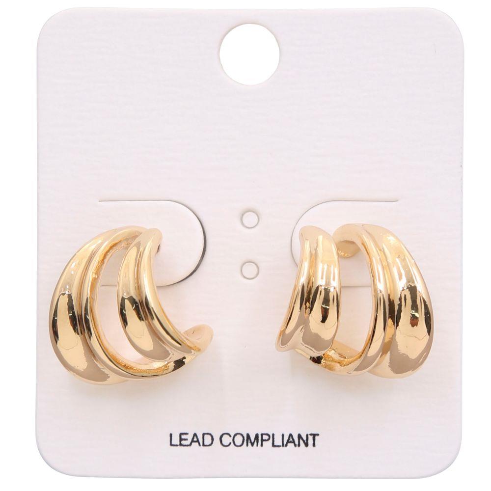 POLISHED METAL ABSTRACT CURVE HOOP EARRING