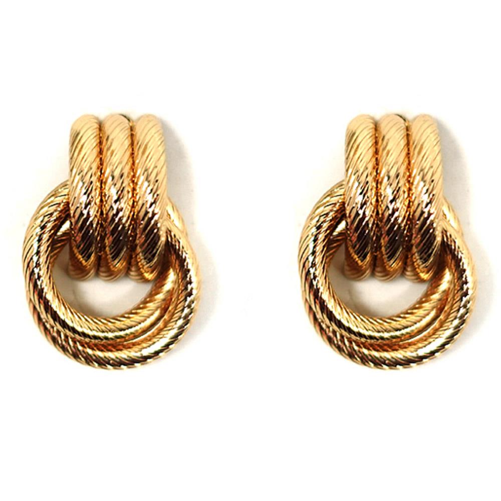 CRISS CROSS TWO TONE CIRCLE LINK DANGLE EARRING