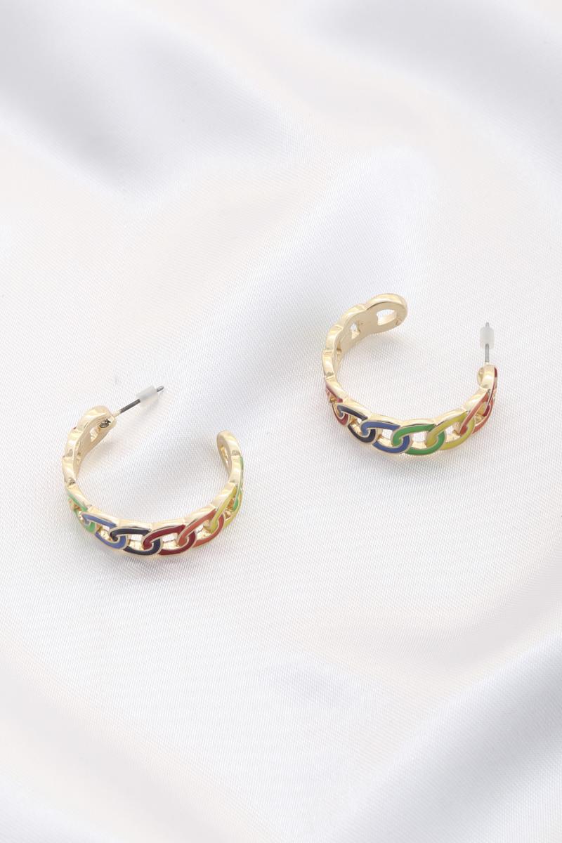 COLORFUL CURB LINK OPEN CIRCLE EARRING