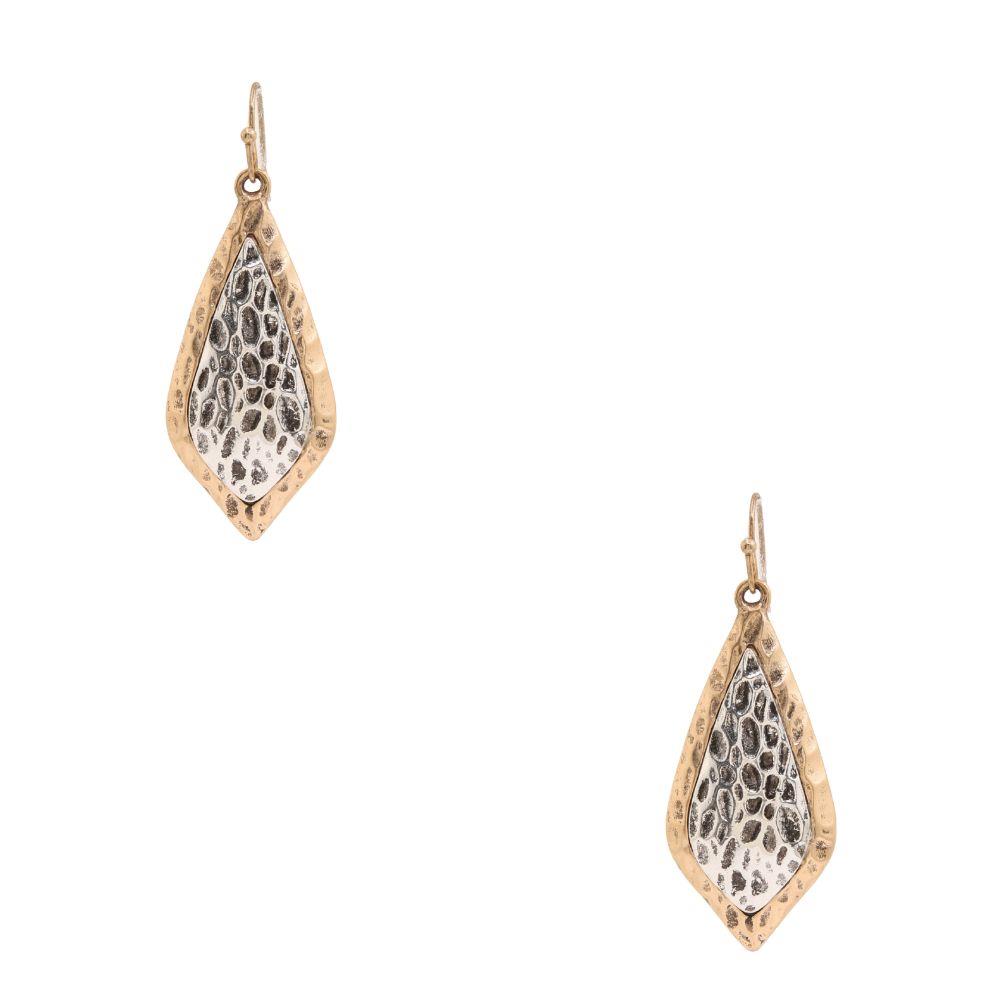 TEXTURED TWO TONE METAL DANGLE EARRING