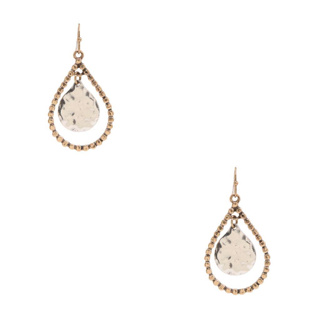 TWO TONE TEARDROP METAL DANGLE EARRING