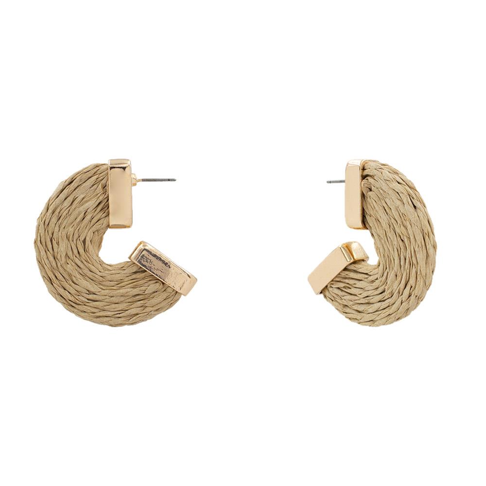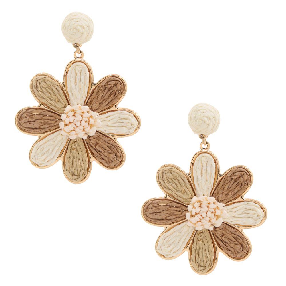 WOOD RAFFIA TEARDROP DANGLE EARRING