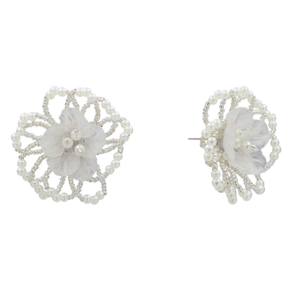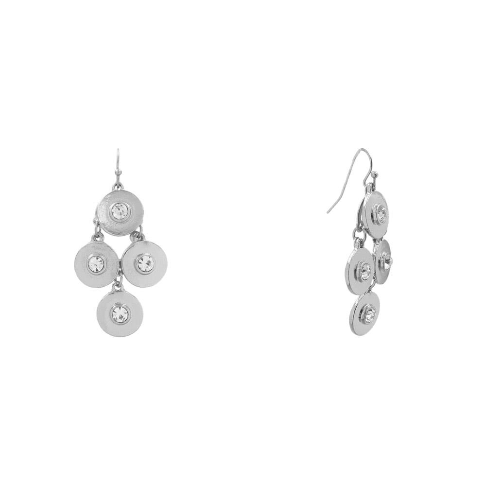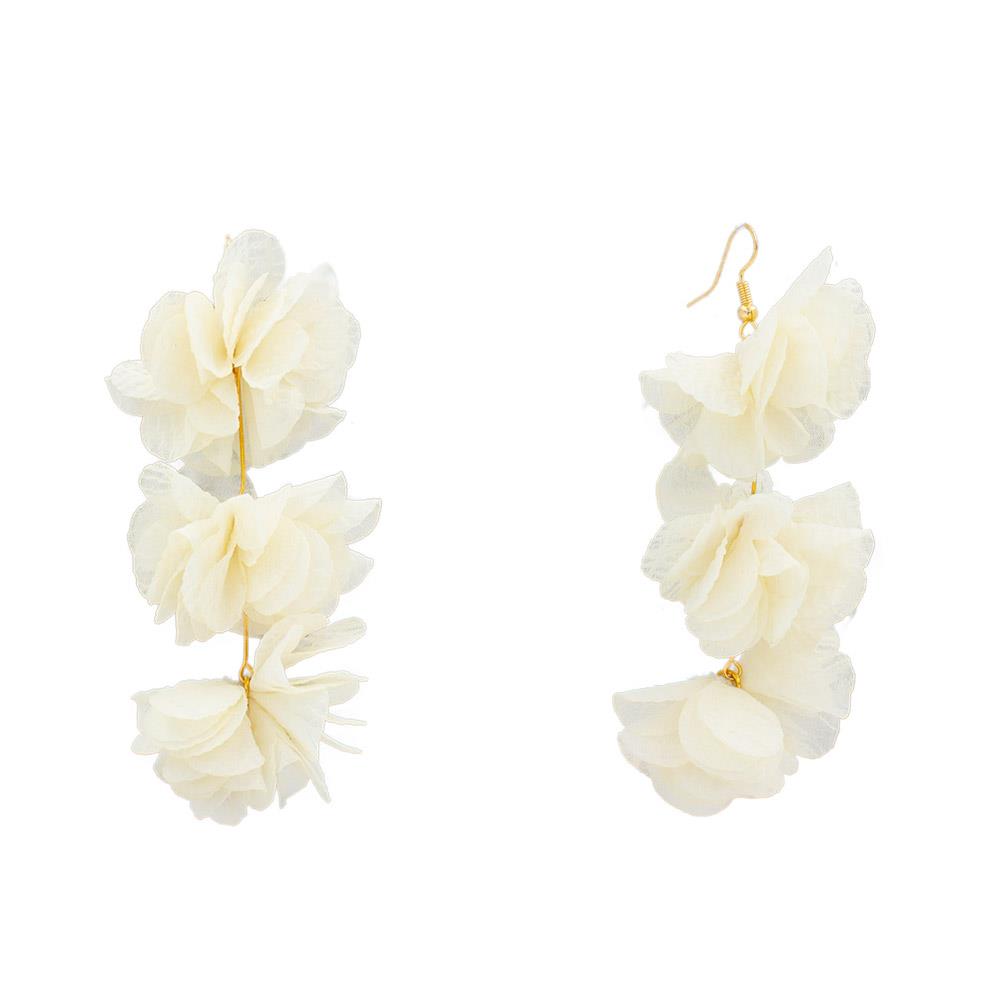CRYSTAL METAL FLOWER LINK DANGLE EARRING