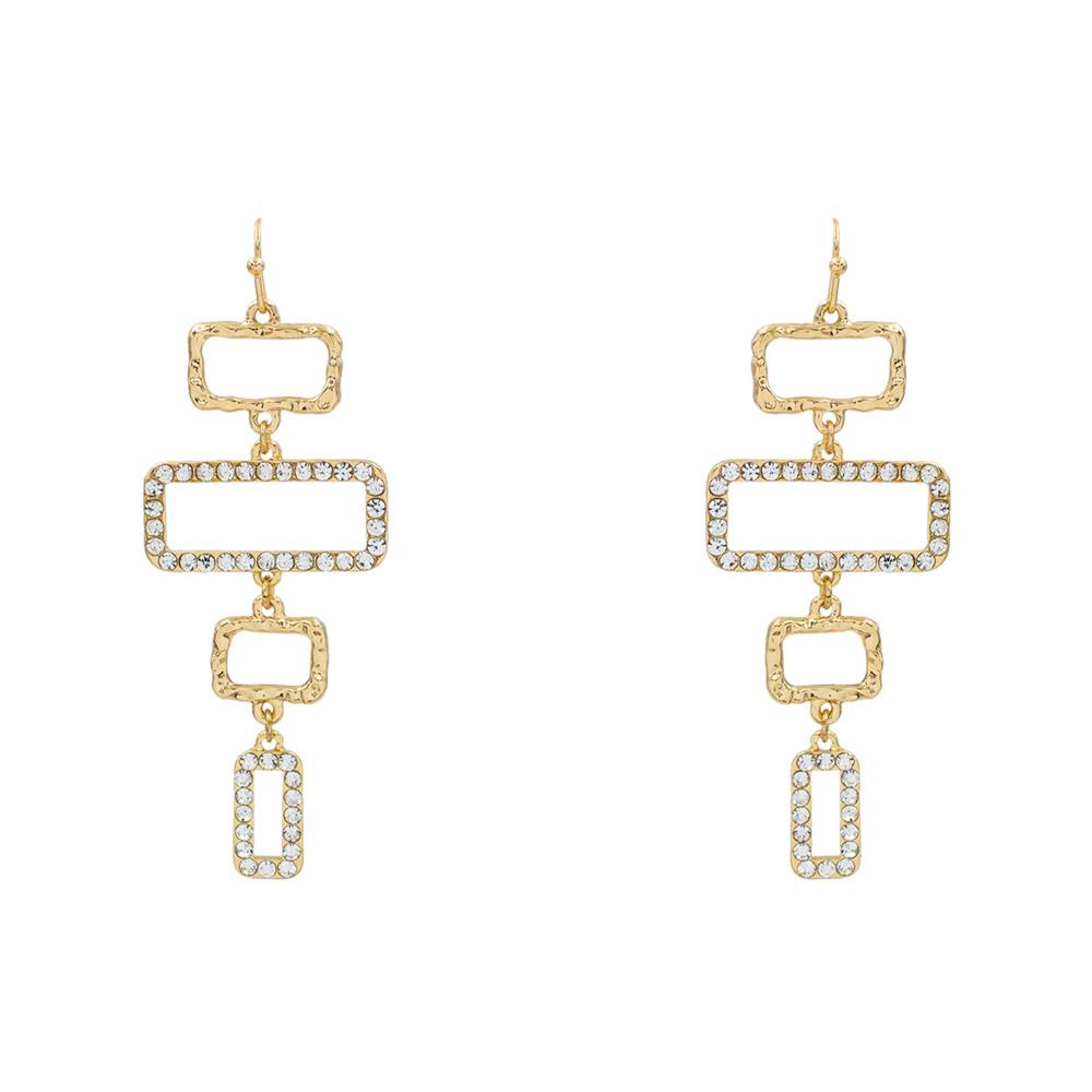 CRYSTAL TEARDROP RECTANGLE LINK DANGLE EARRING