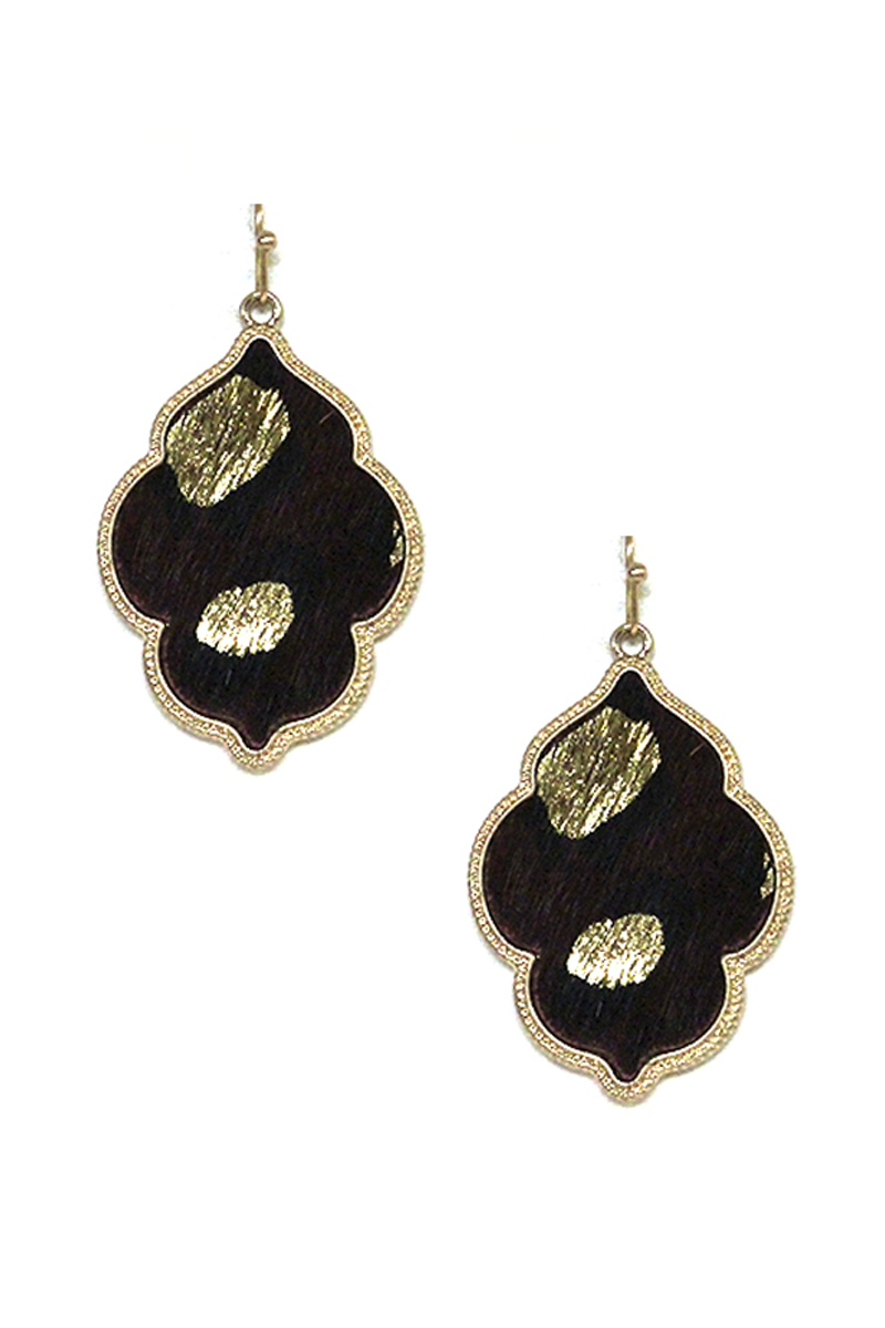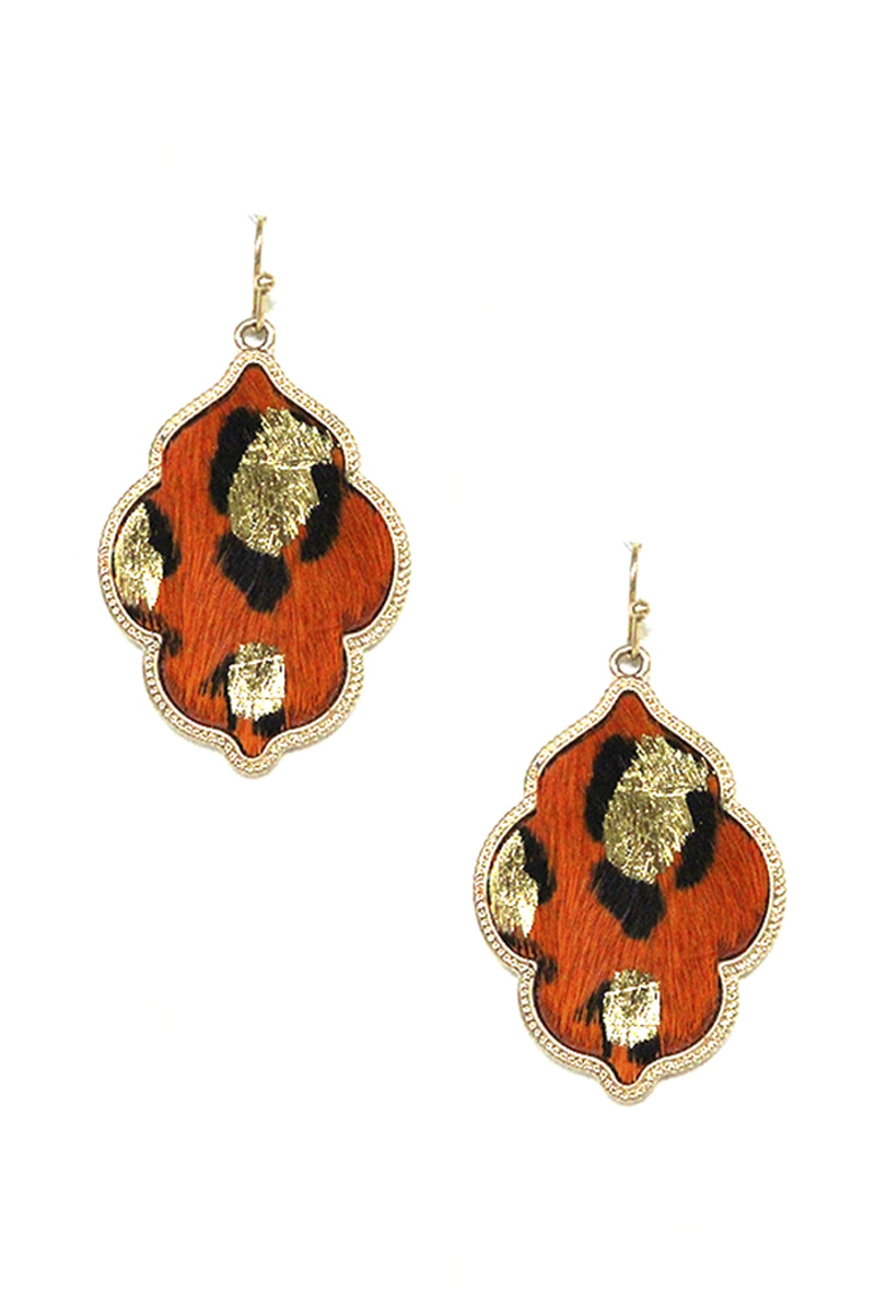 HAIRCALF LEOPARD METAL PATTERN DANGLE EARRING
