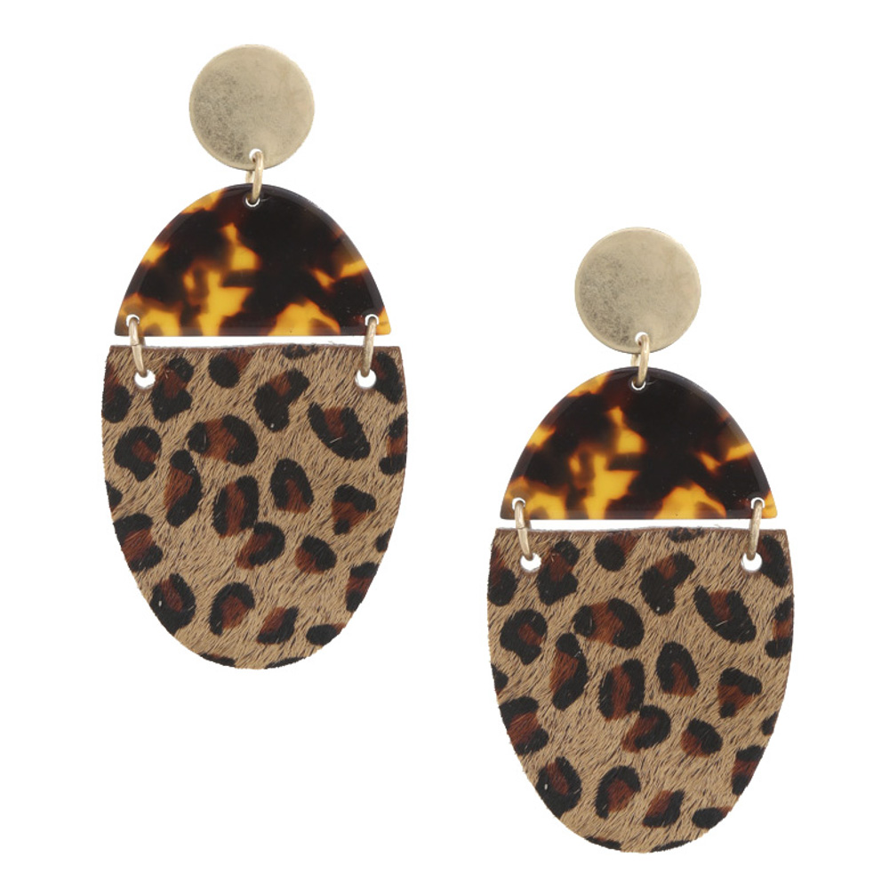 HAIRCALF LEOPARD OVAL DANGLE EARRING
