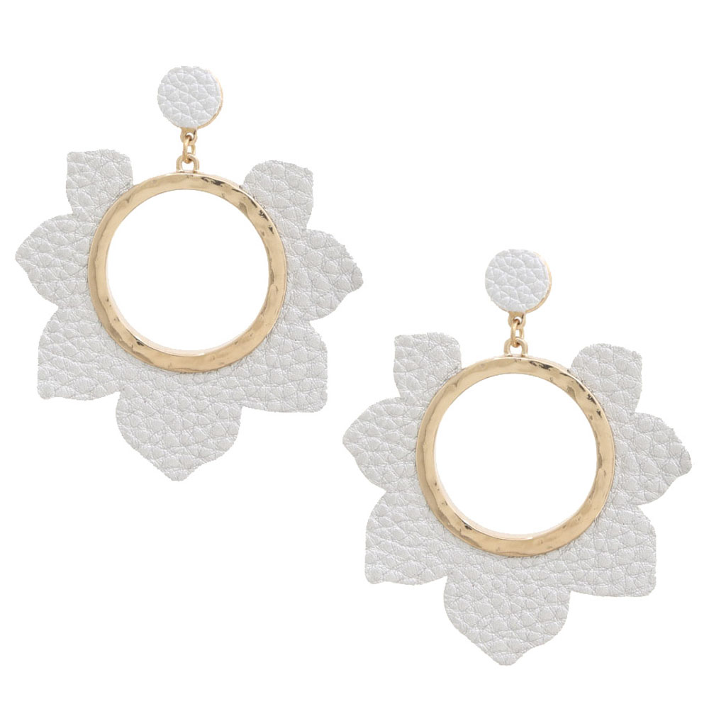 PU LEATHER FLOWER SHAPE DANGLE EARRING