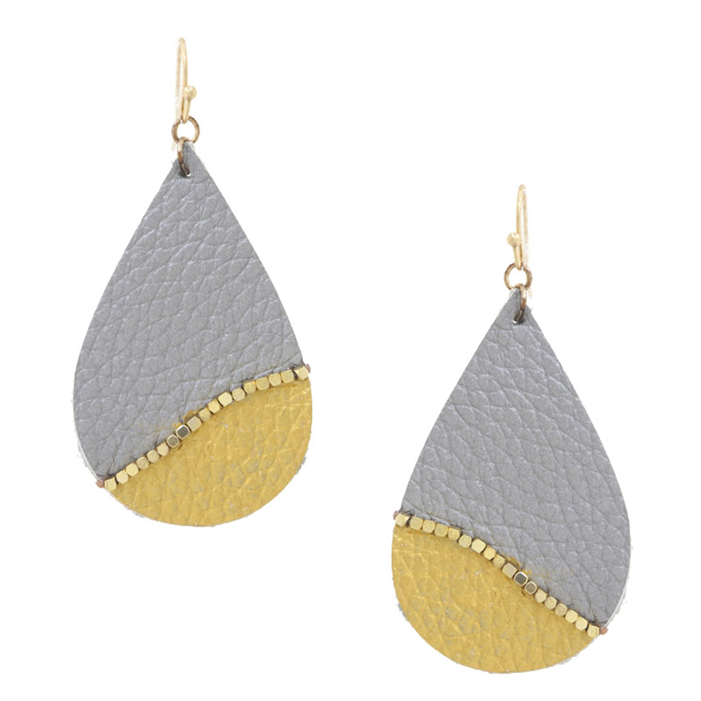 CORK TEARDROP METAL EDGE DANGLE EARRING