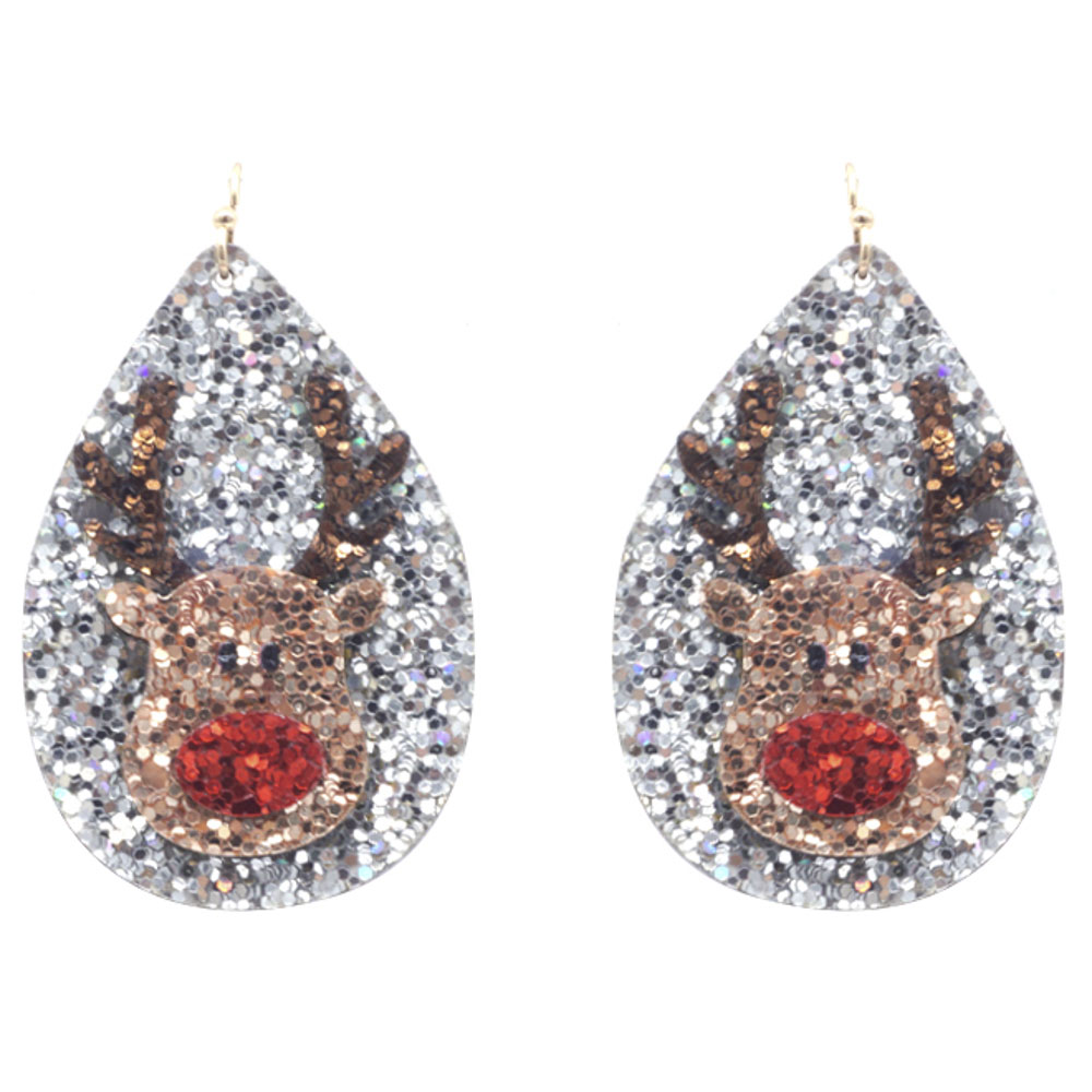 GLITTER CHRISTMAS RUDOLPH DANGLE EARRING