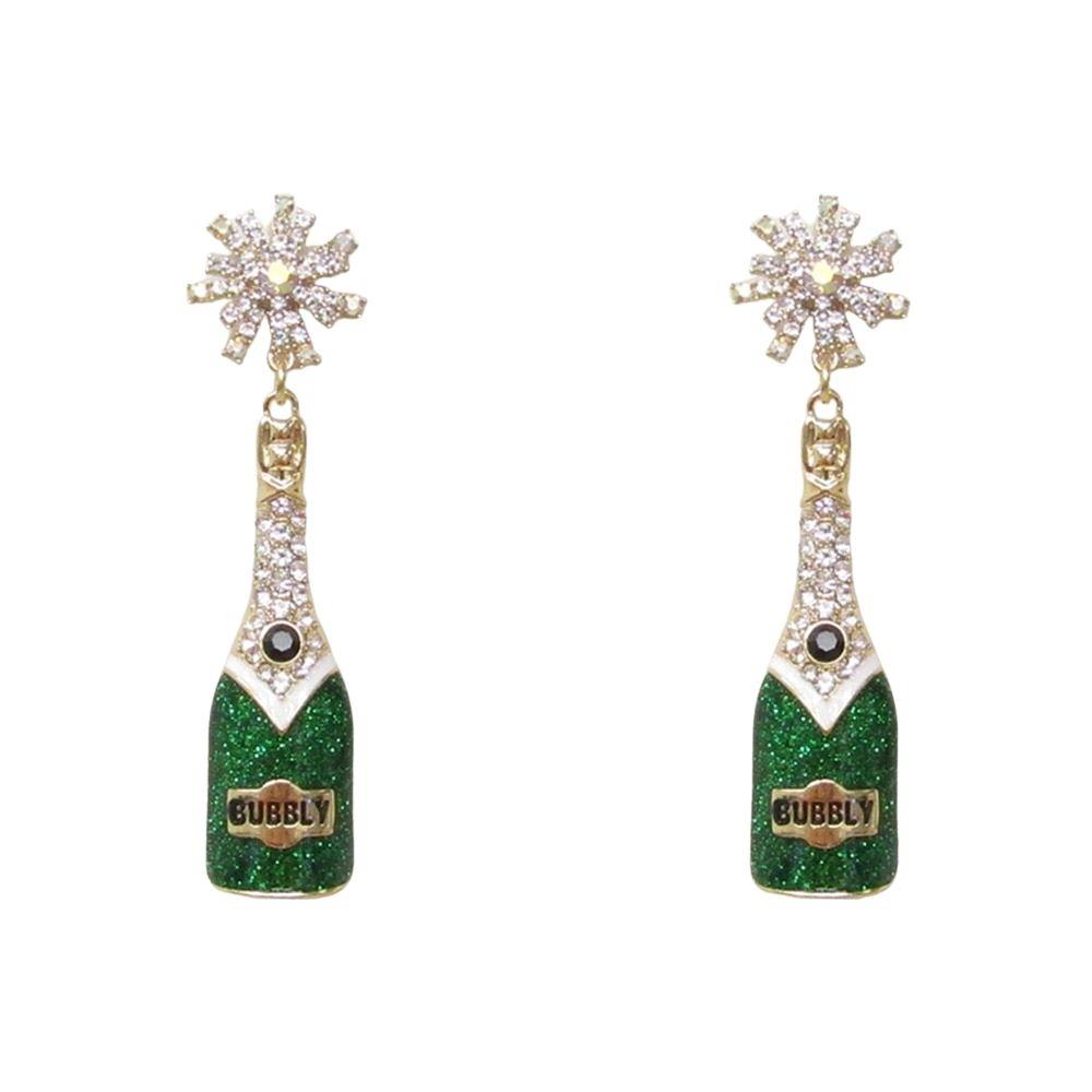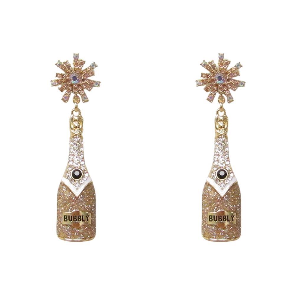 CHAMPAGNE BOTTLE BUBBLY RHINESTONE EARRING