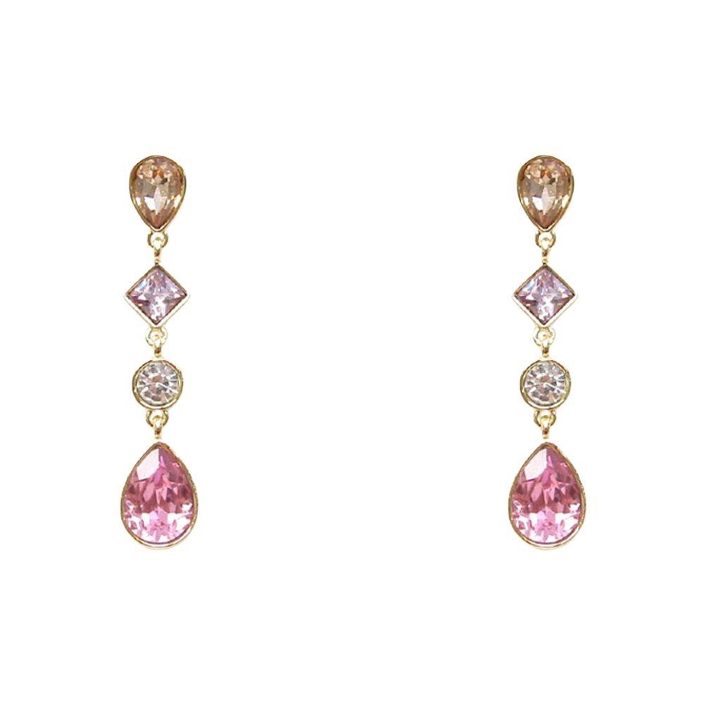 14K GOLD DIPPED RHINESTONE SQUARE SHAPE EARRING