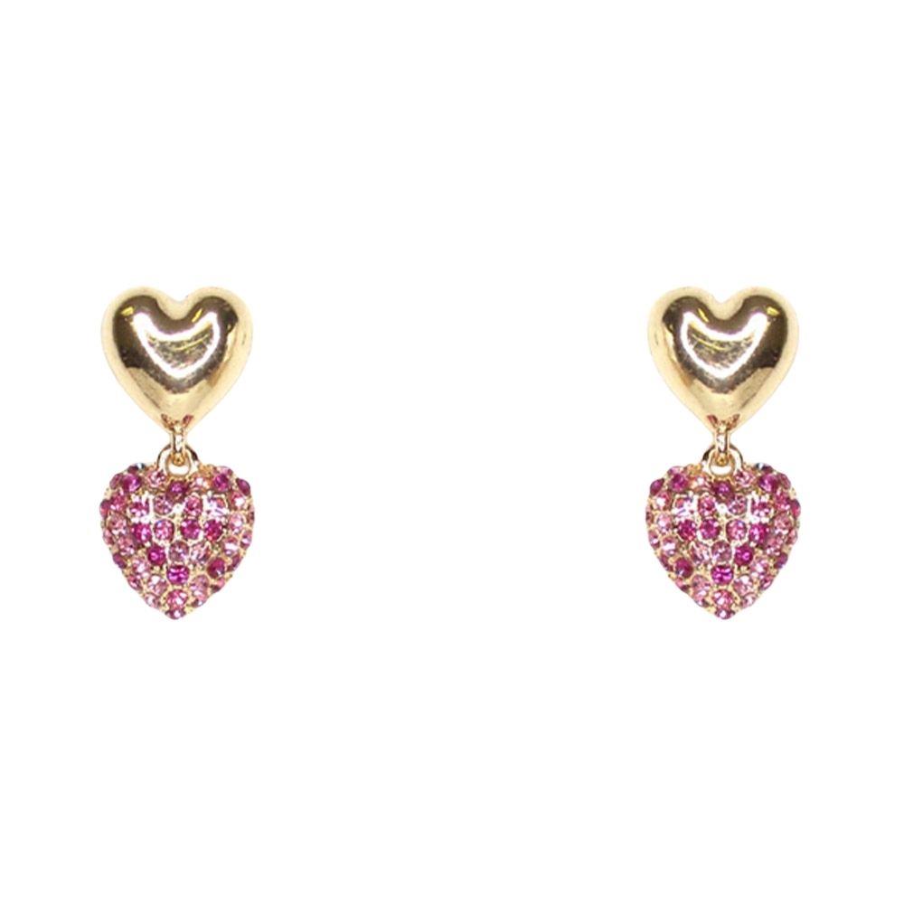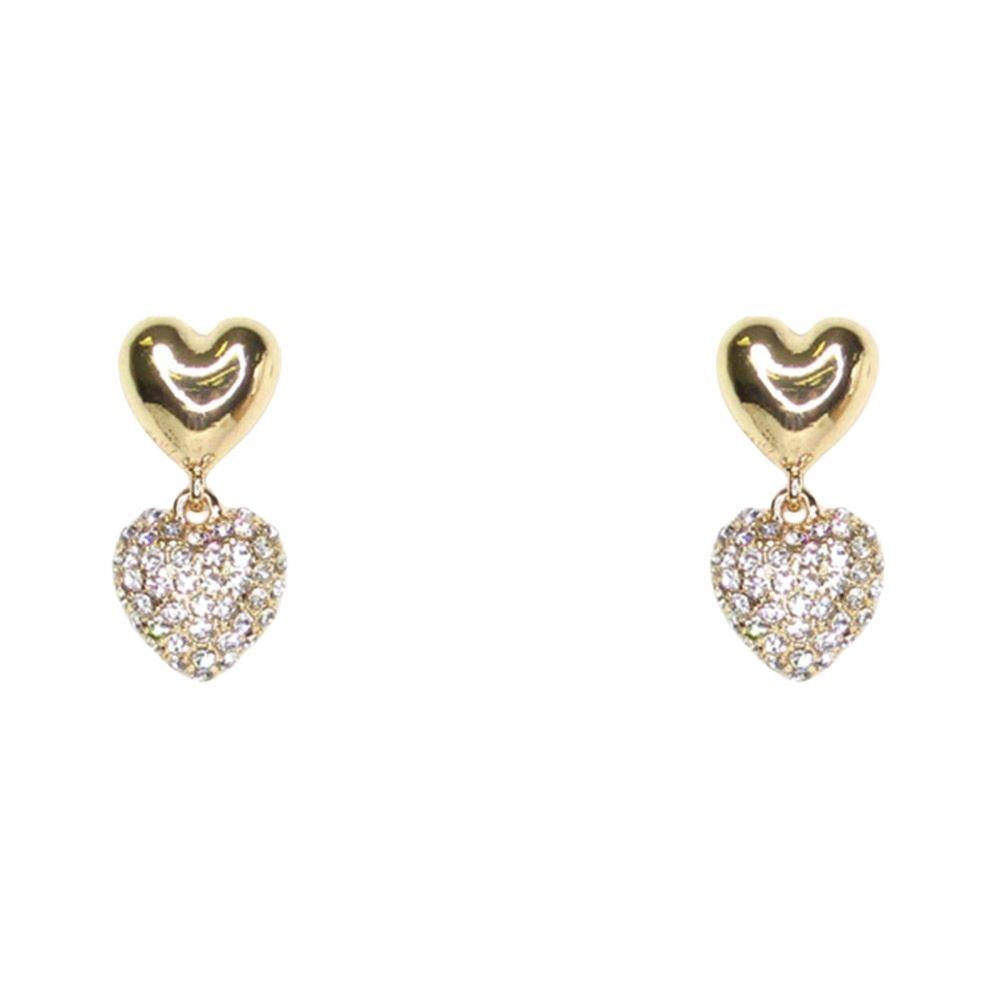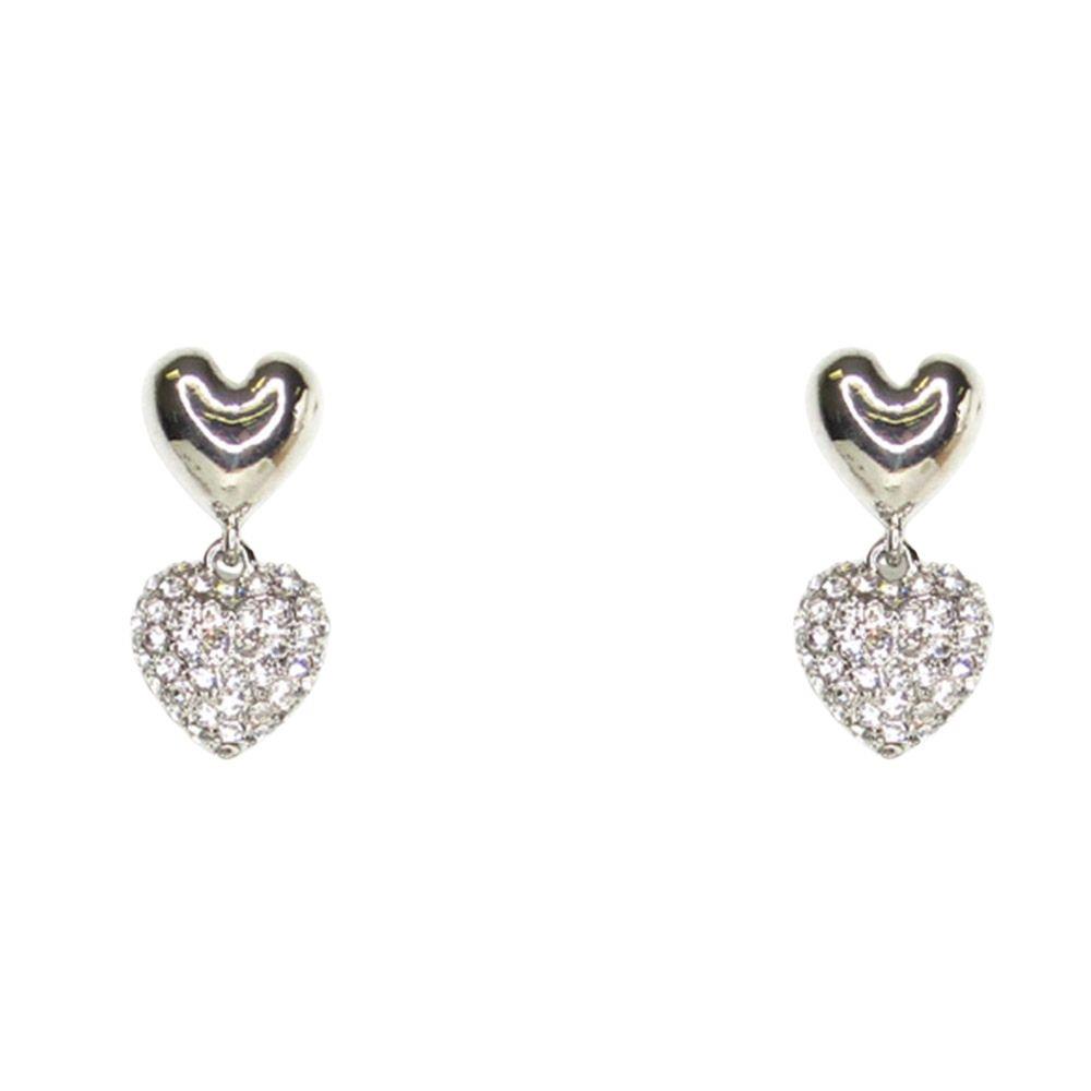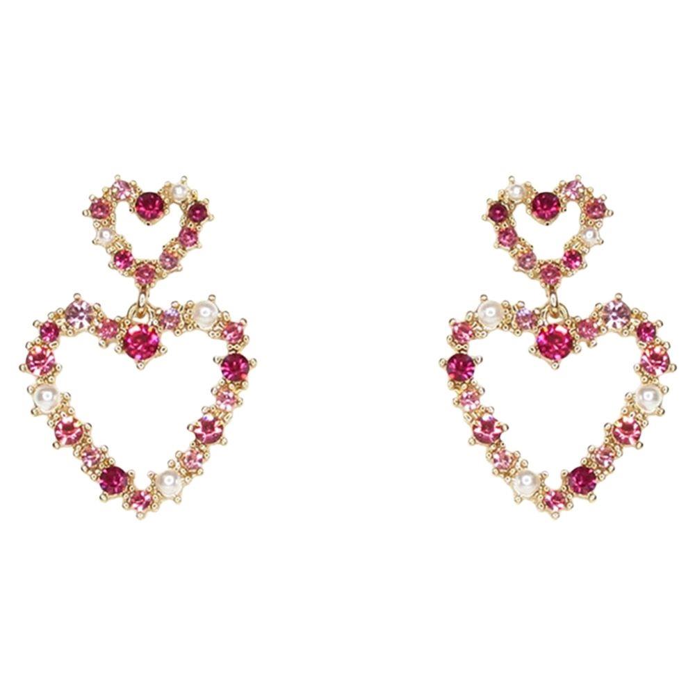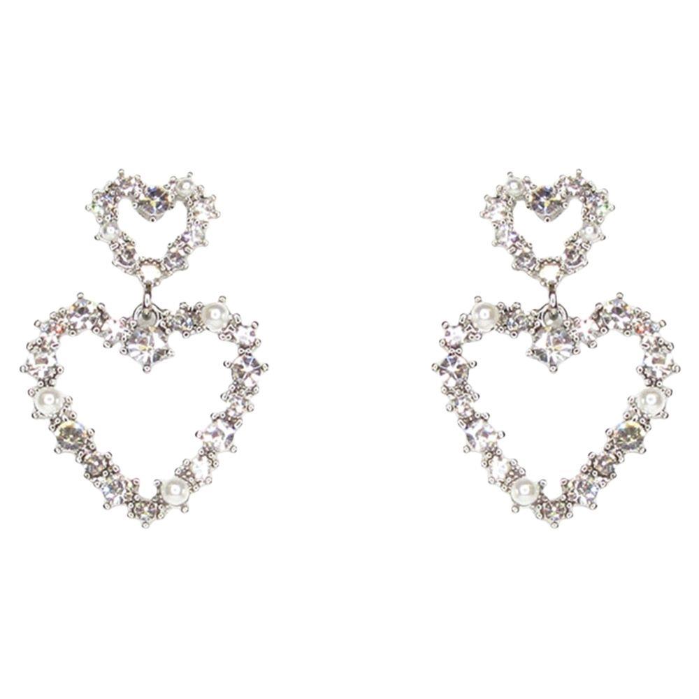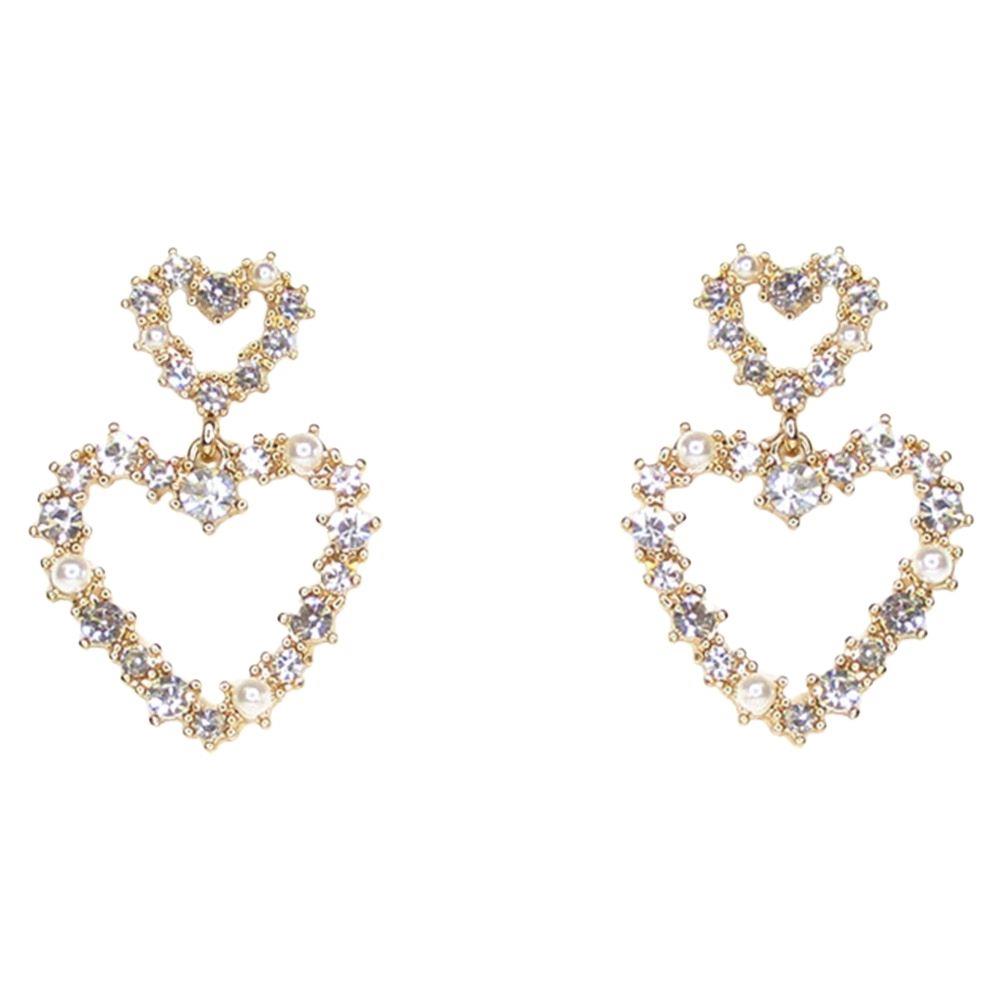 RHINESTONE HEART FAUX PEARL DANGLE EARRING
