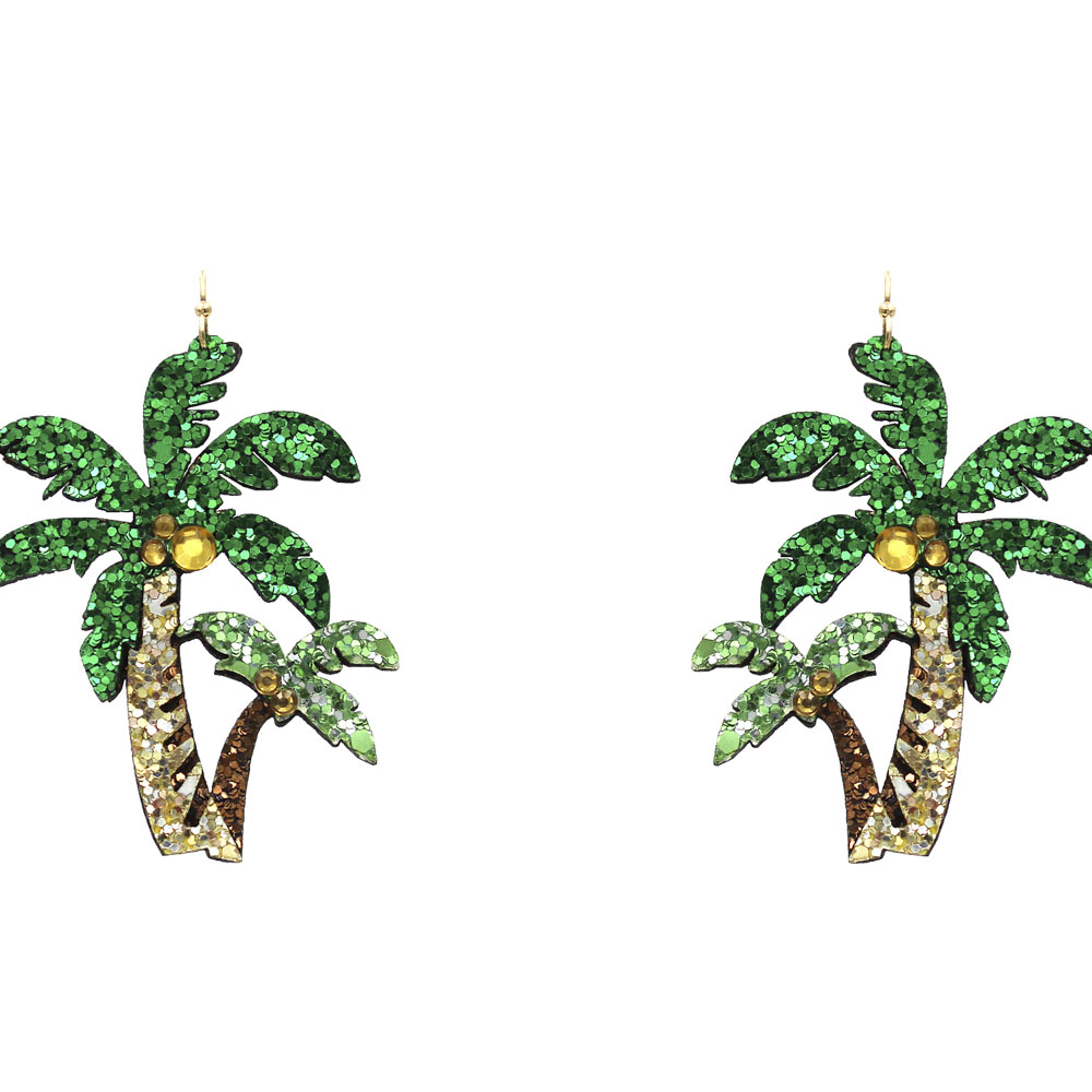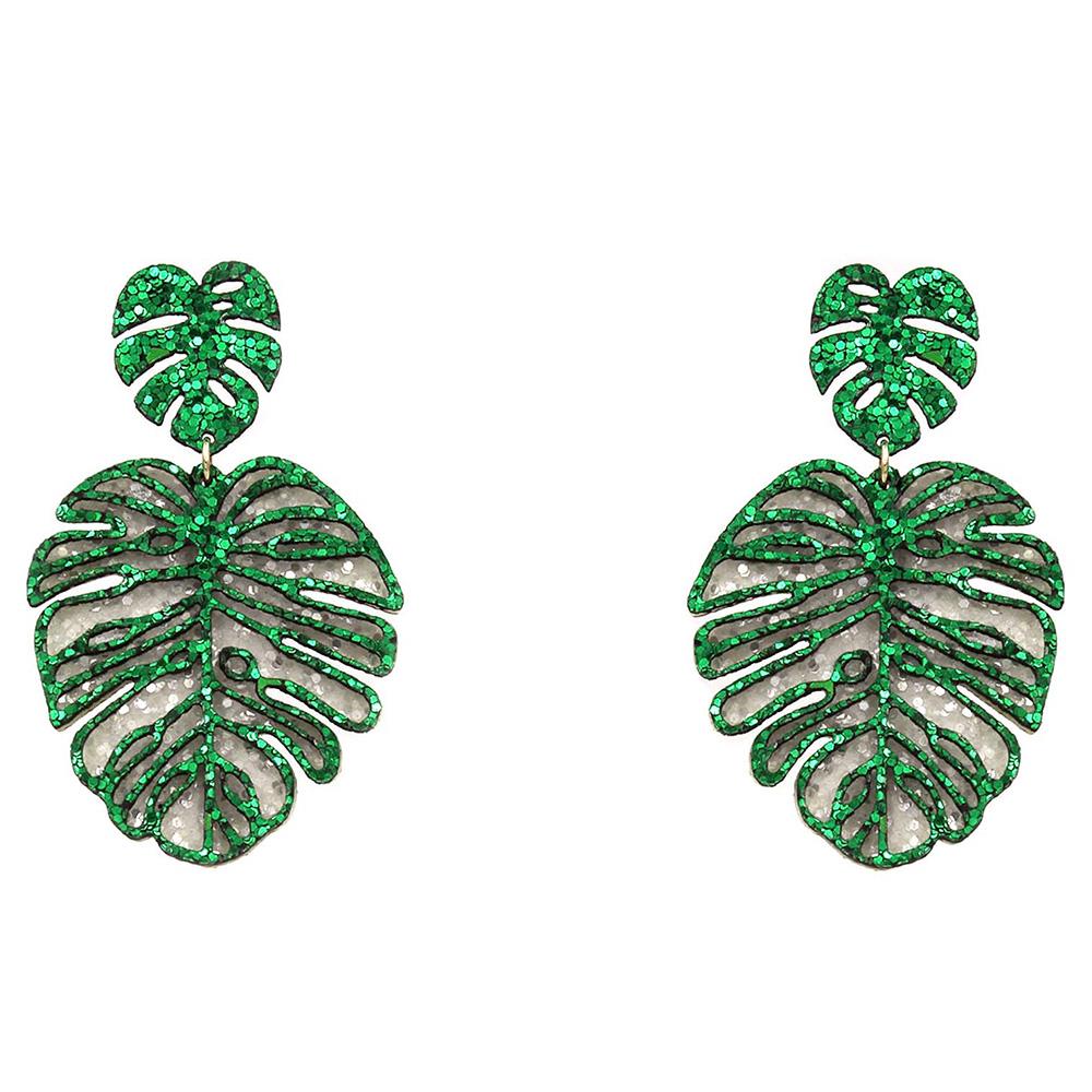 GLITTER TROPICAL LEAF DANGLE EARRING