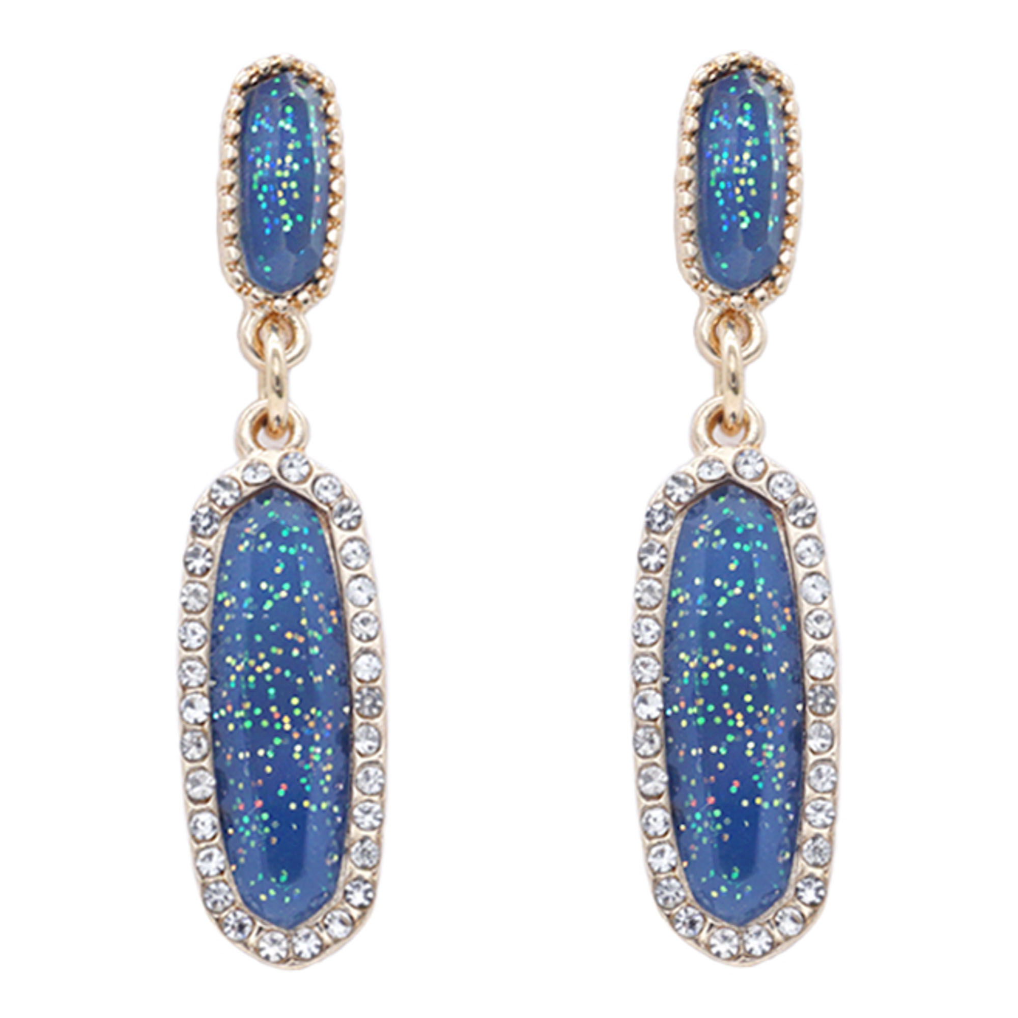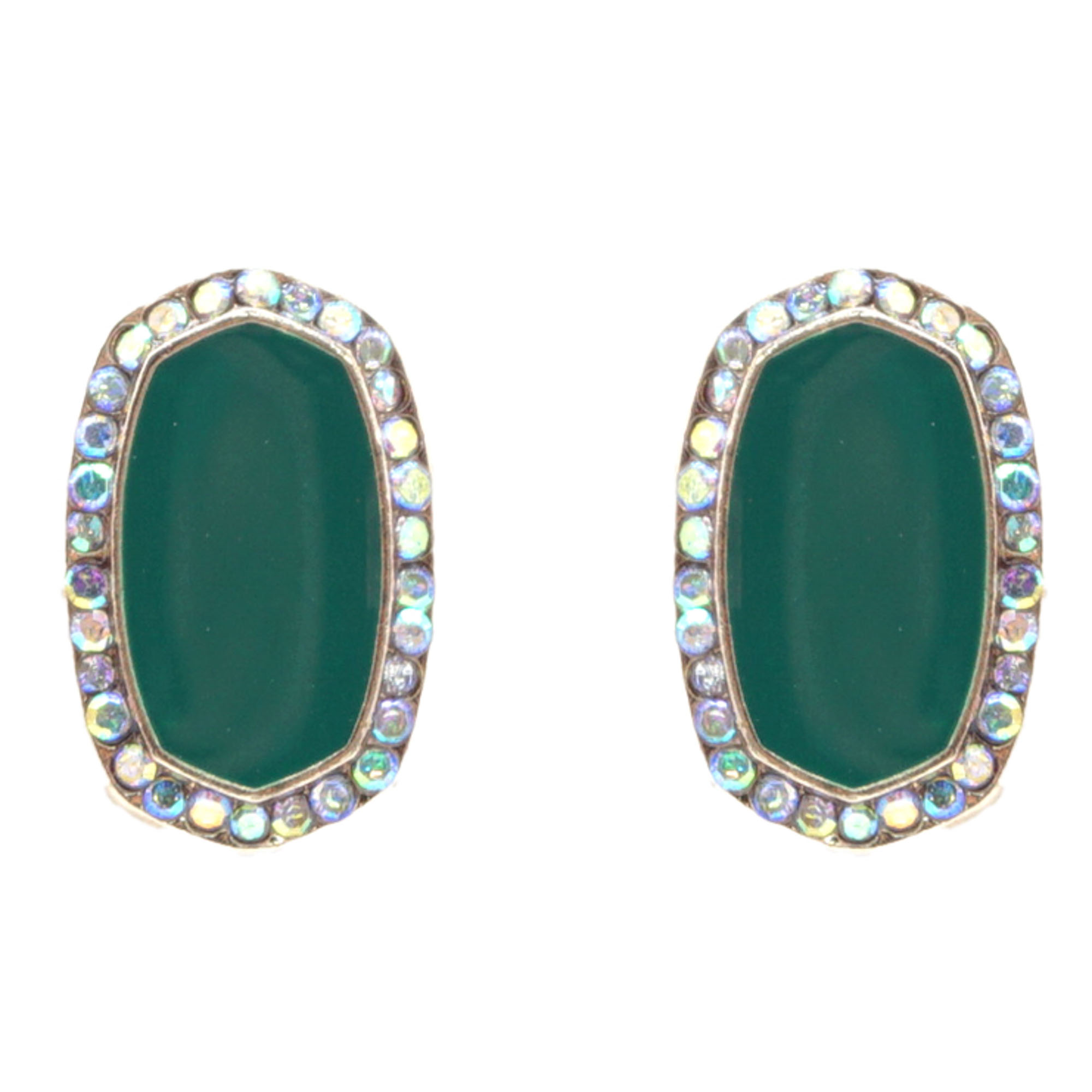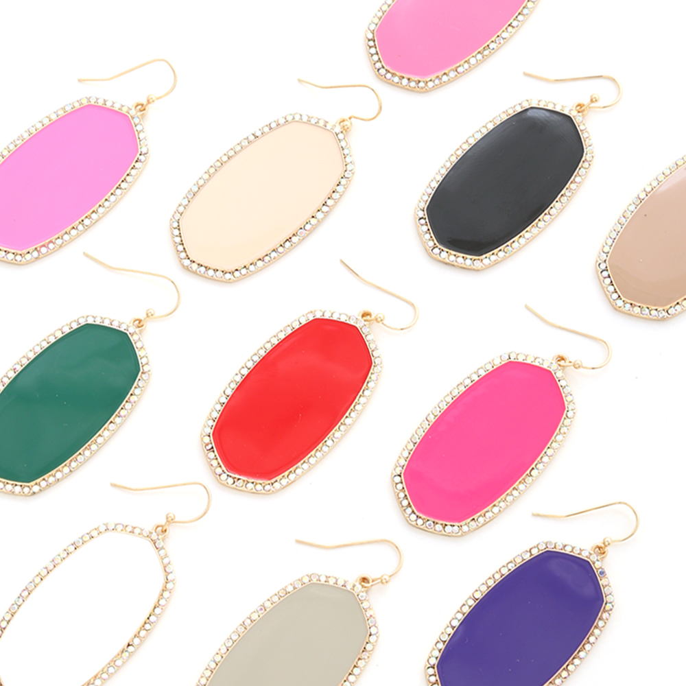 RHINESTONE GEOMETRIC OVAL SHAPE EARRING