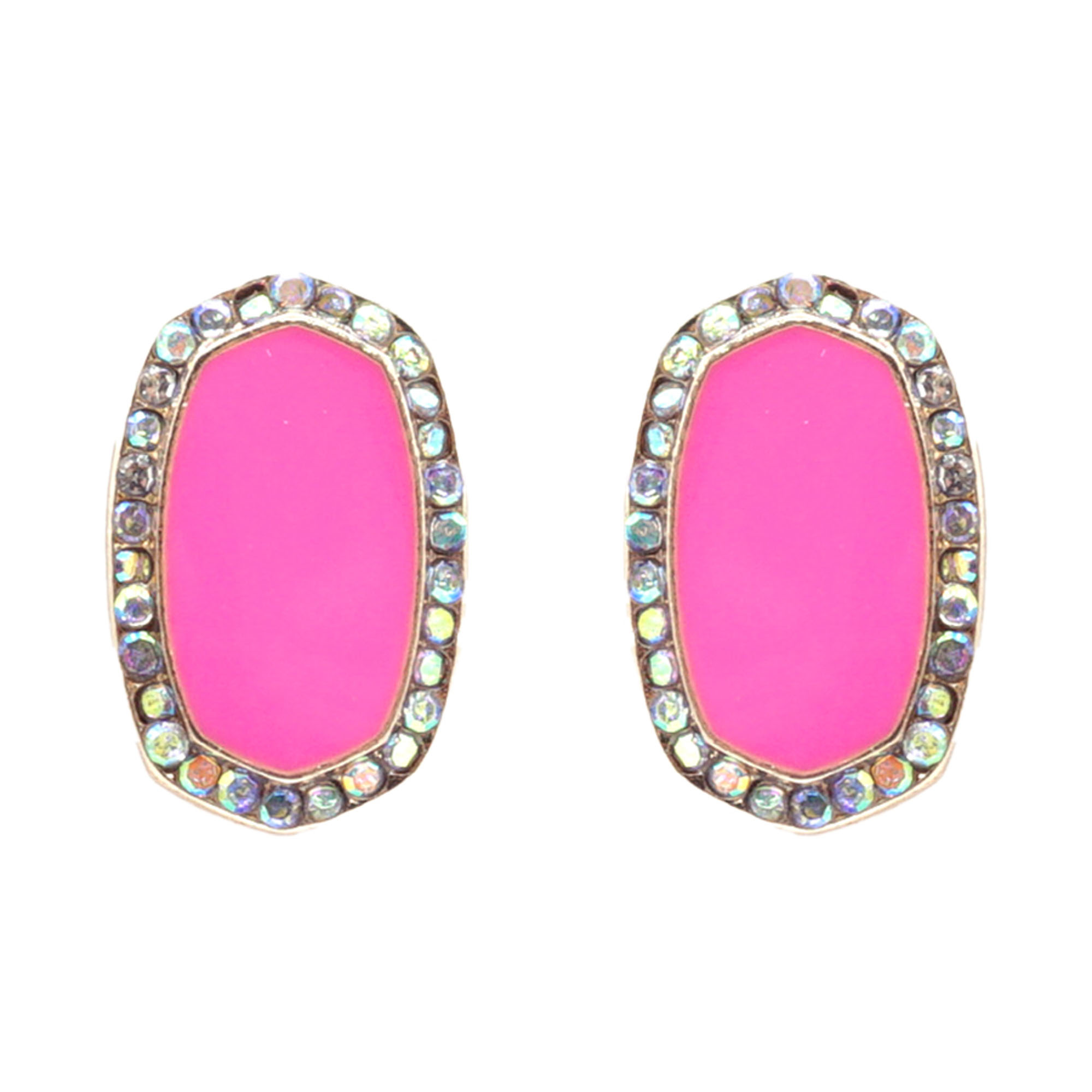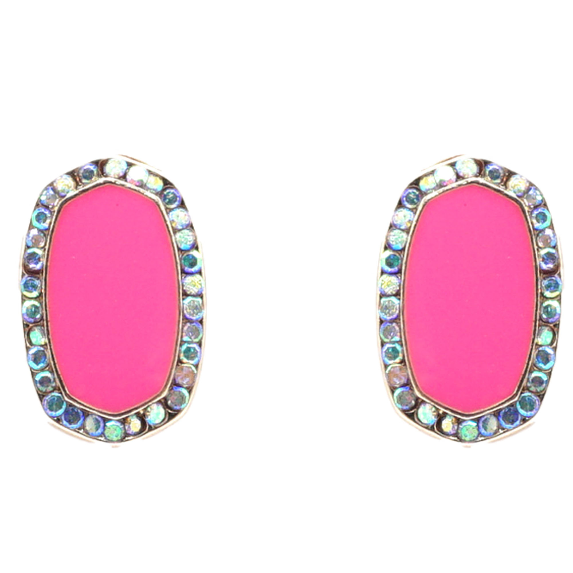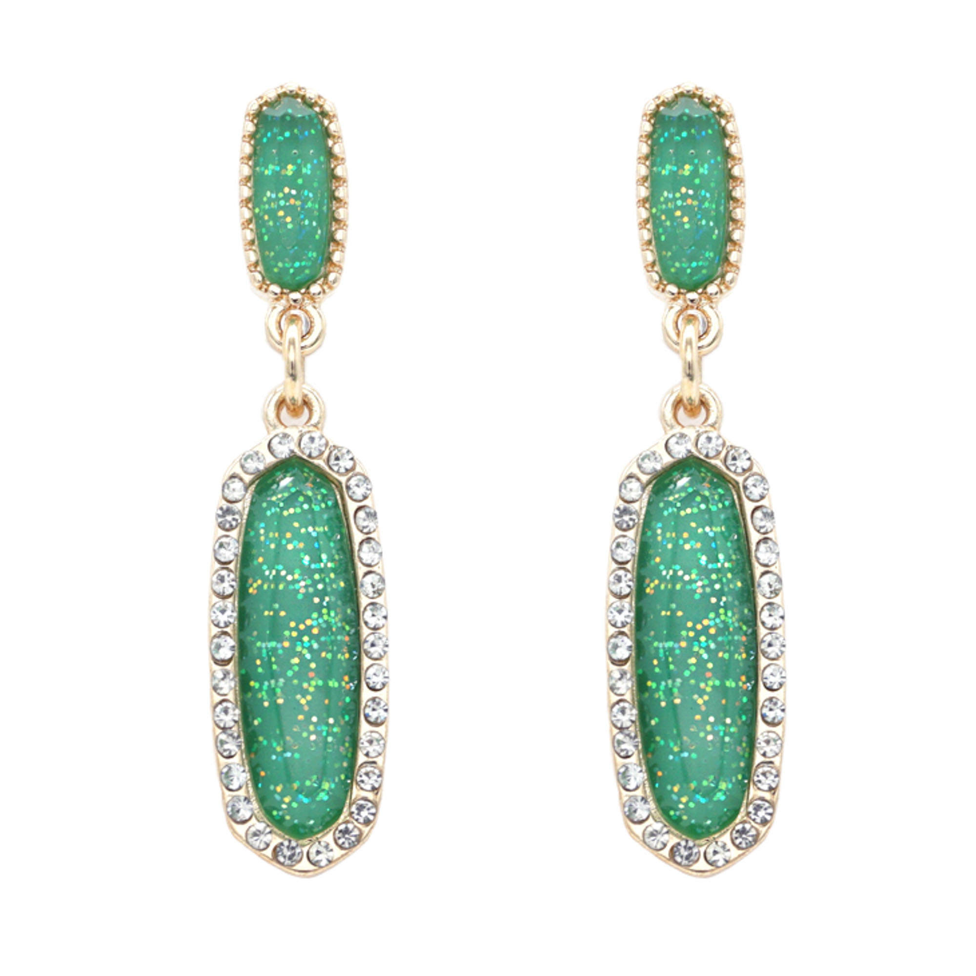 RHINESTONE GEOMETRIC OVAL SHAPE EARRING