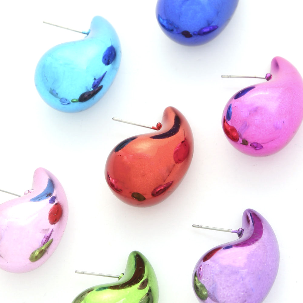 GLITTER TEARDROP STUD EARRING 3 PAIR SET