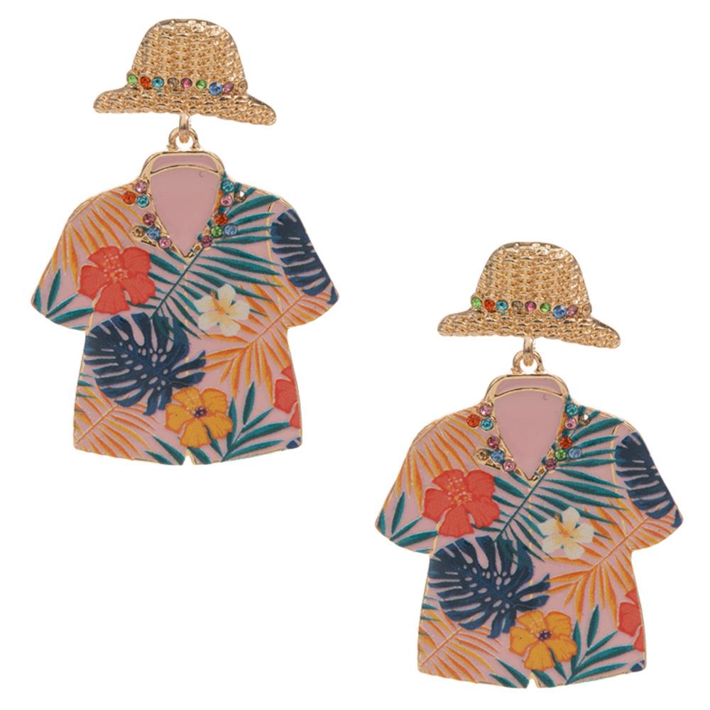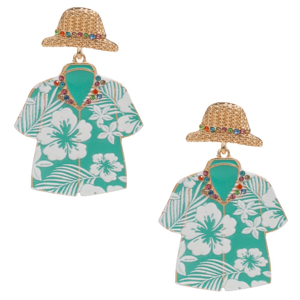HAWAIIAN SHIRT SHAPED ENAMEL TEXTURED EARRING