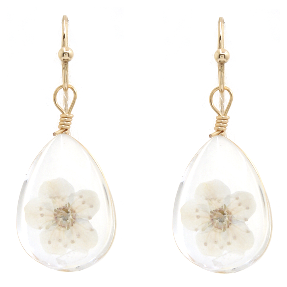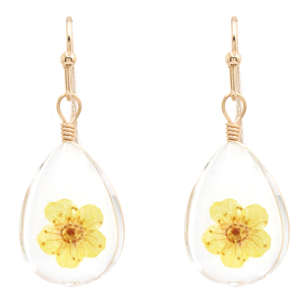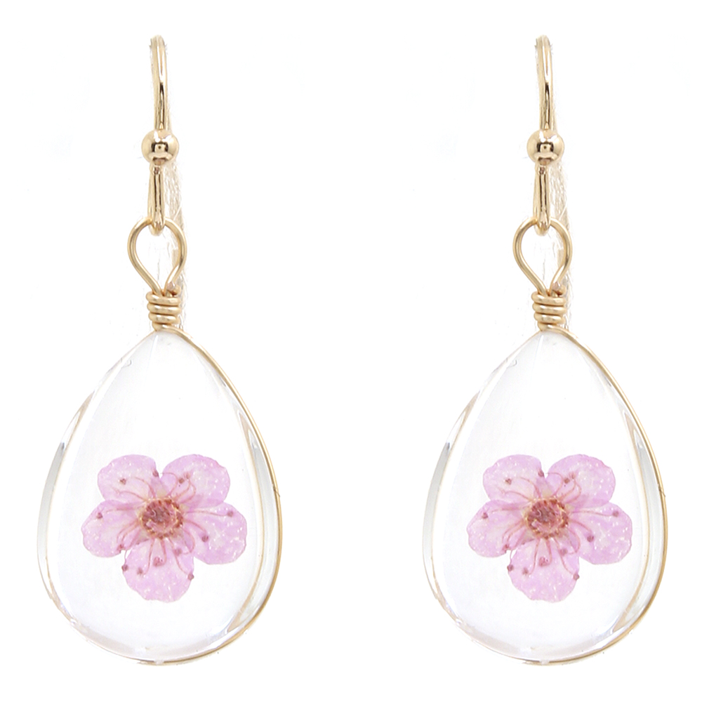 FLOWER CLEAR RESIN TEARDROP EARRING