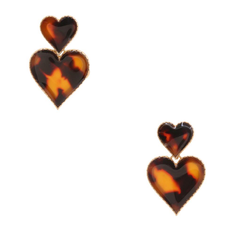 TORTOISE PATTERN DOUBLE HEART DANGLE EARRING