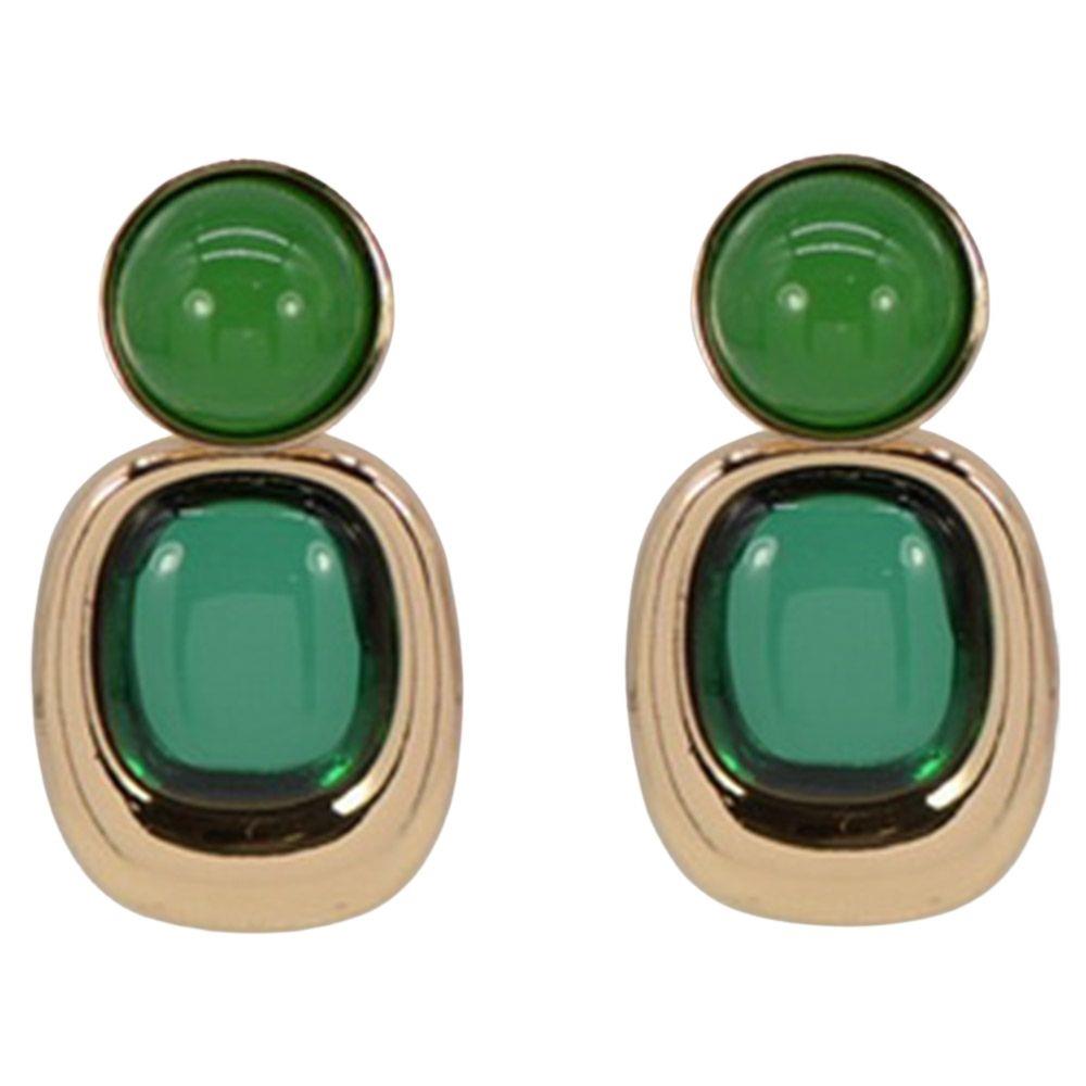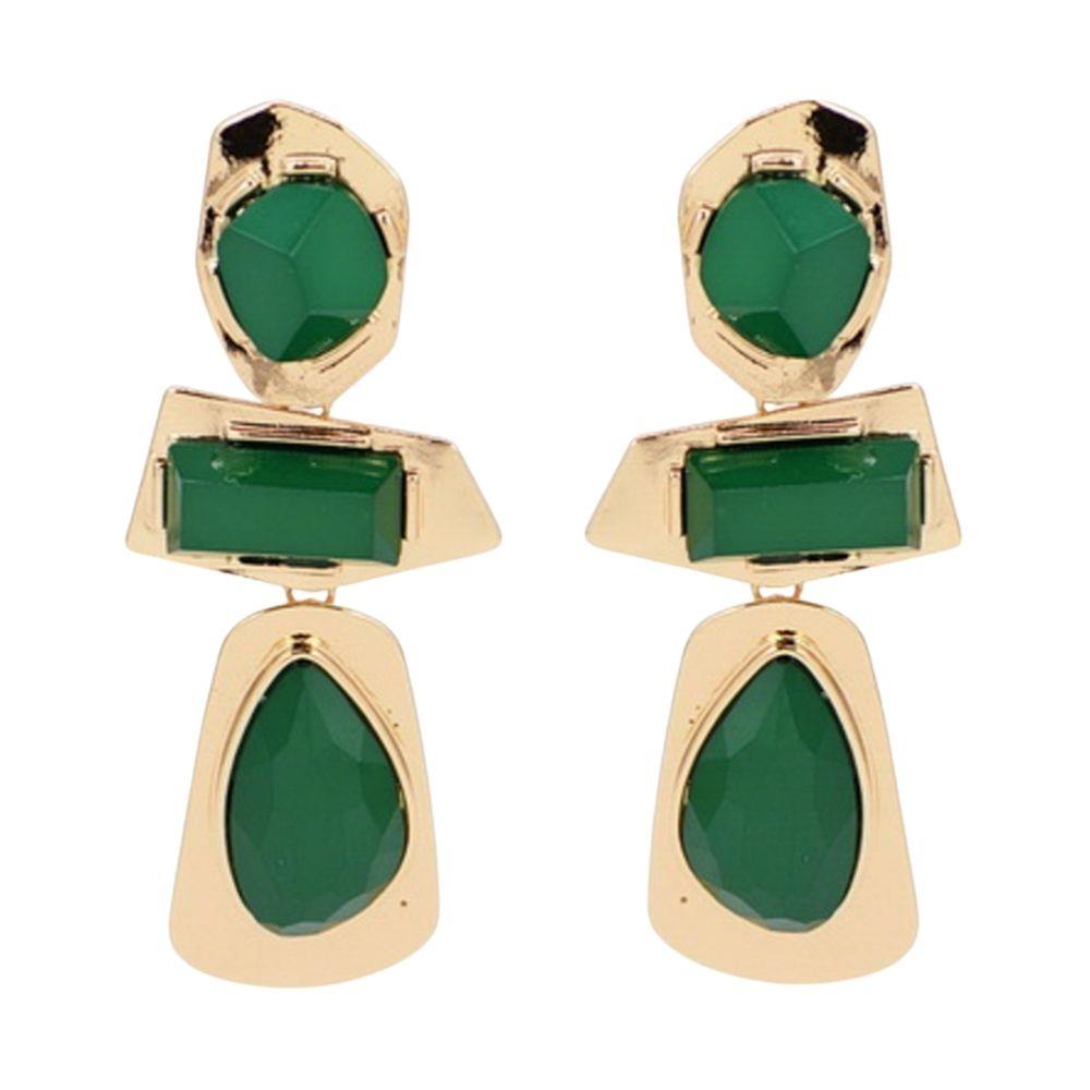 STONE METAL SQUARE LINK DANGLE EARRING