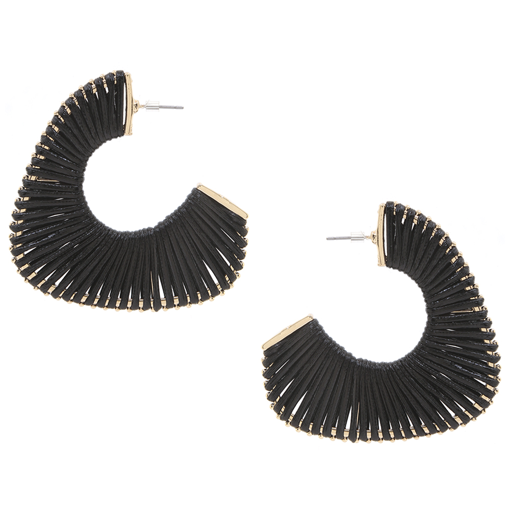 TWO TONE RAFFIA STRAW HOOP EARRINGS