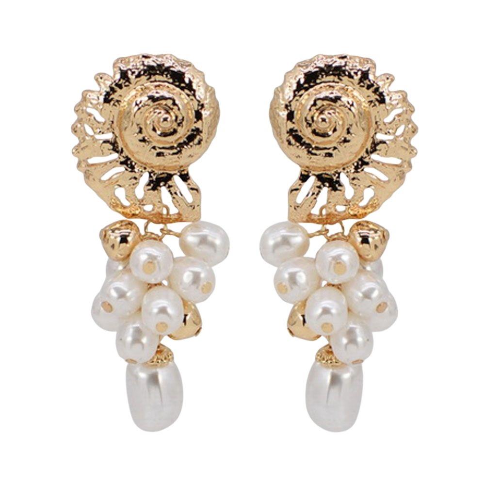 METAL SHELL PEARL EARRINGS