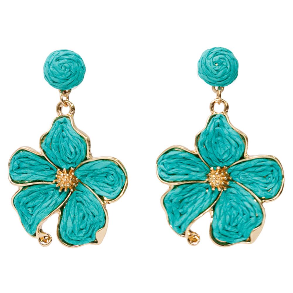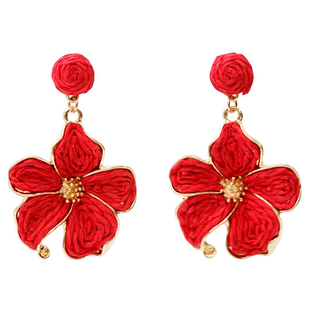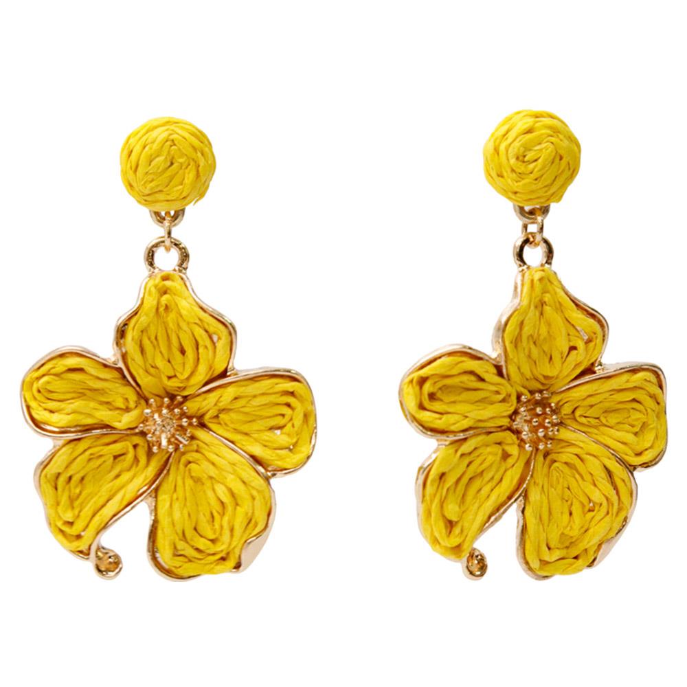 FLOWER RAFFIA LINK DANGLE EARRING