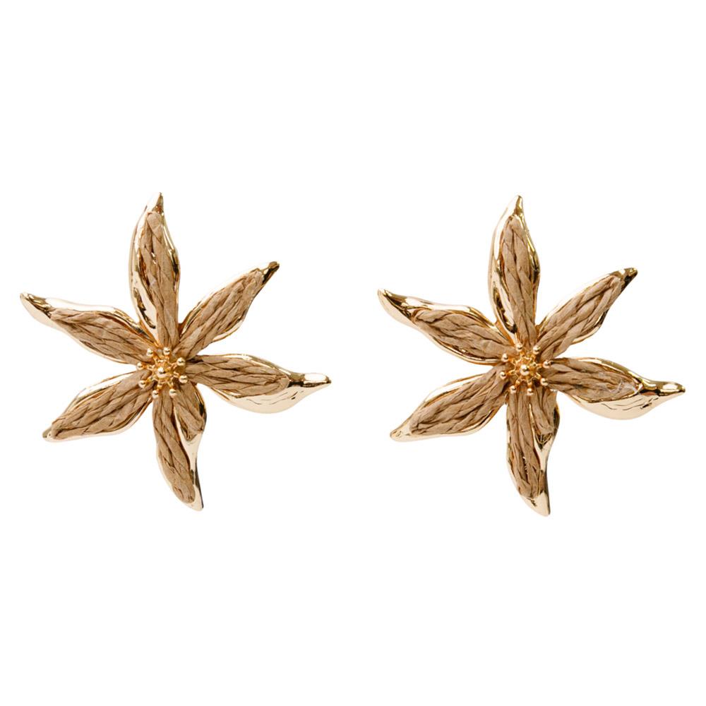 RAFFIA WIRE FLOWER METAL EARRING