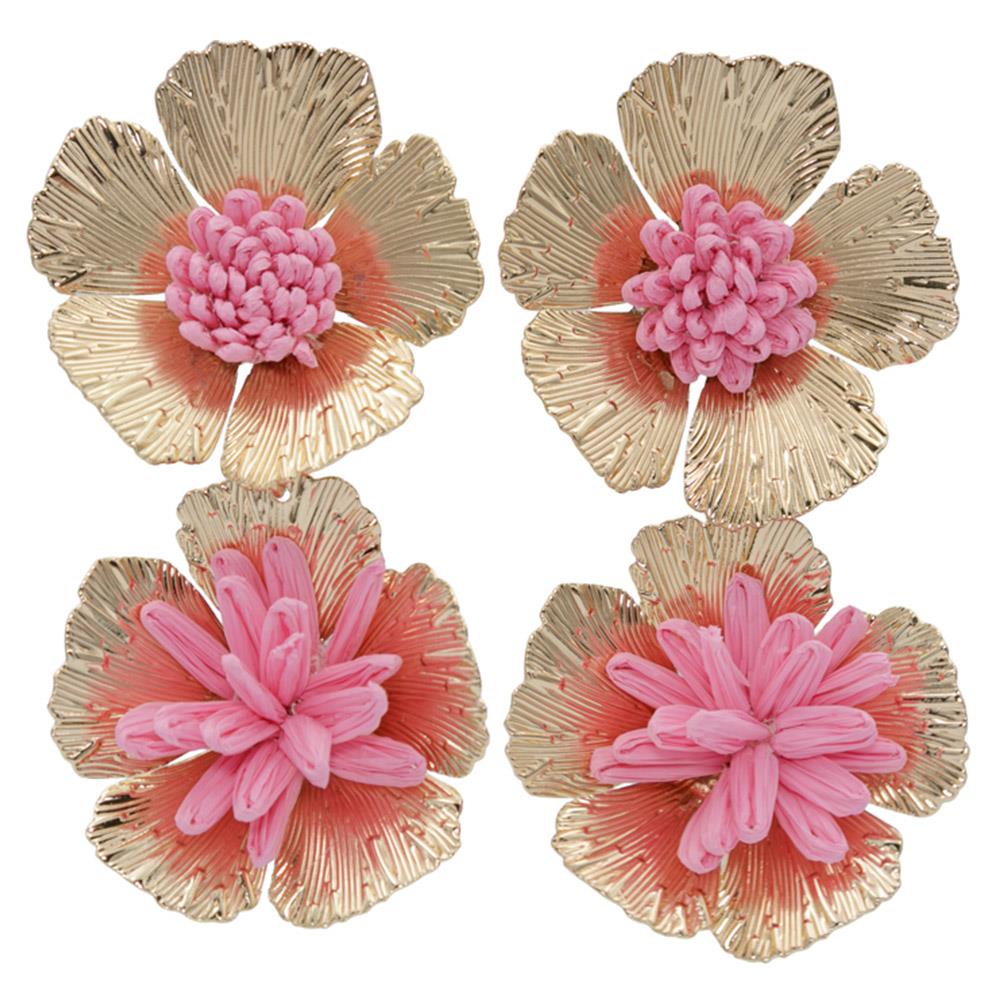 FLOWER METAL STRAW MIX EARRINGS