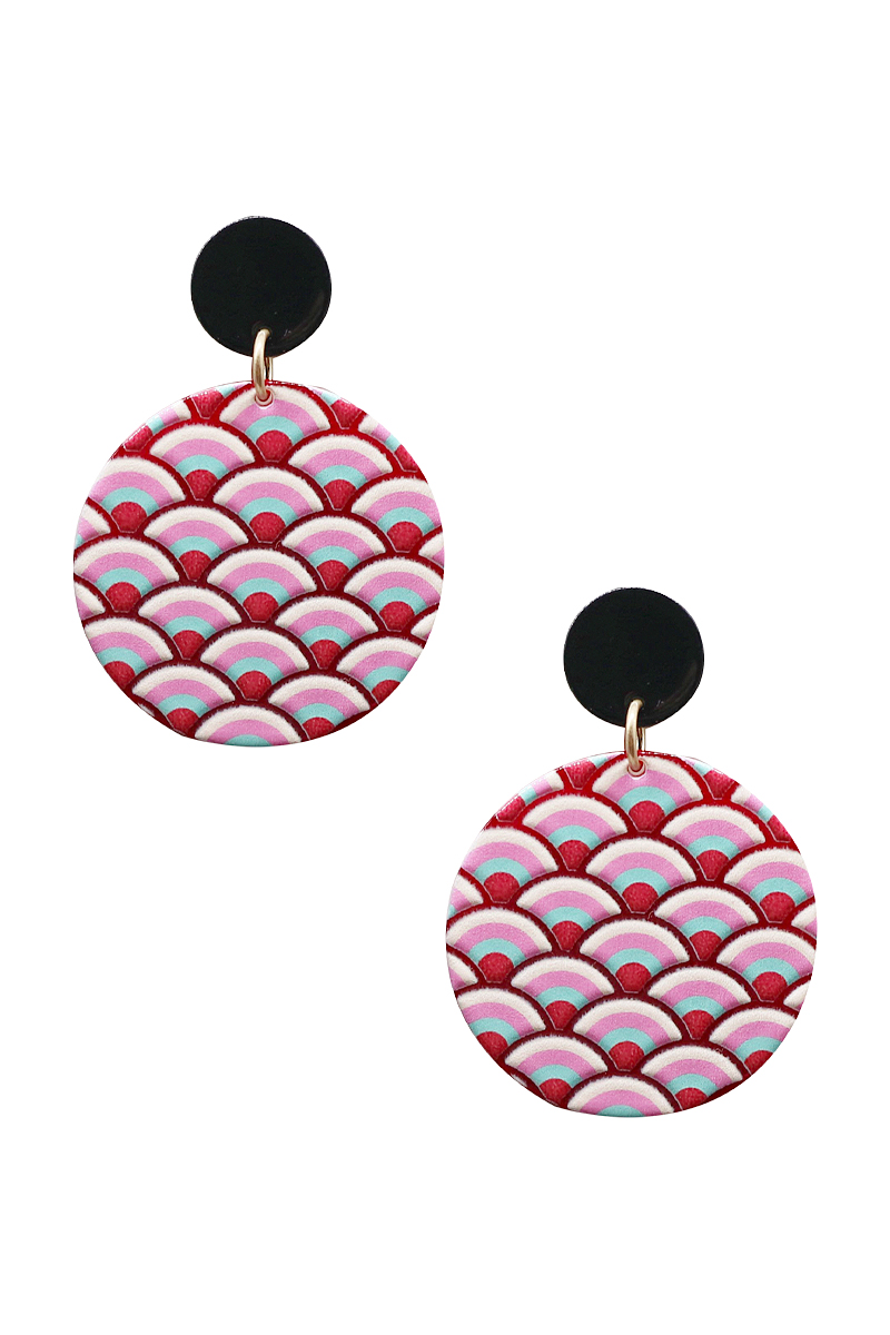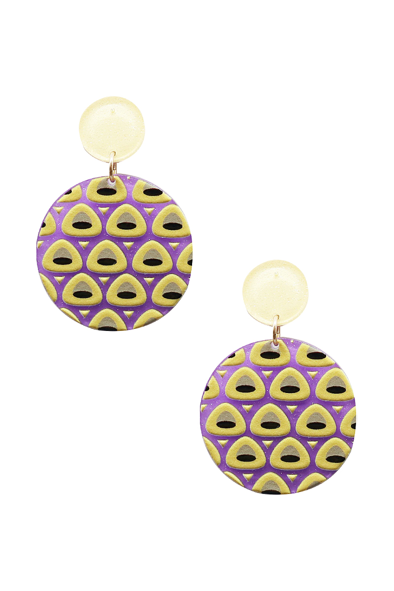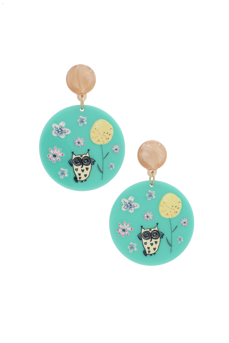OWL FLOWER PATTER DISC DANGLE EARRING