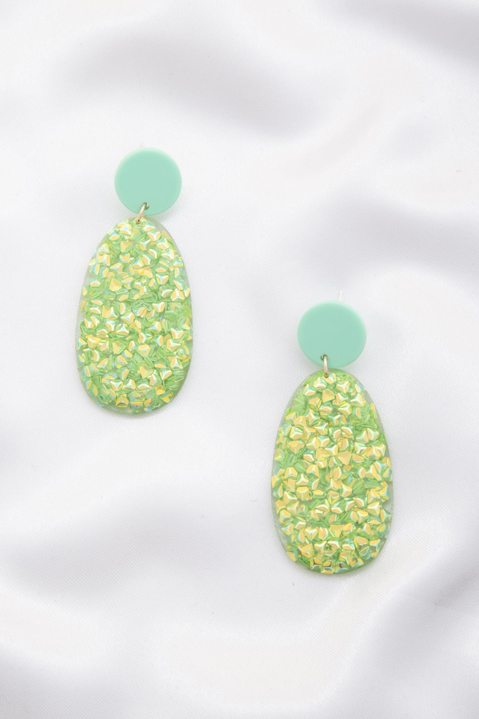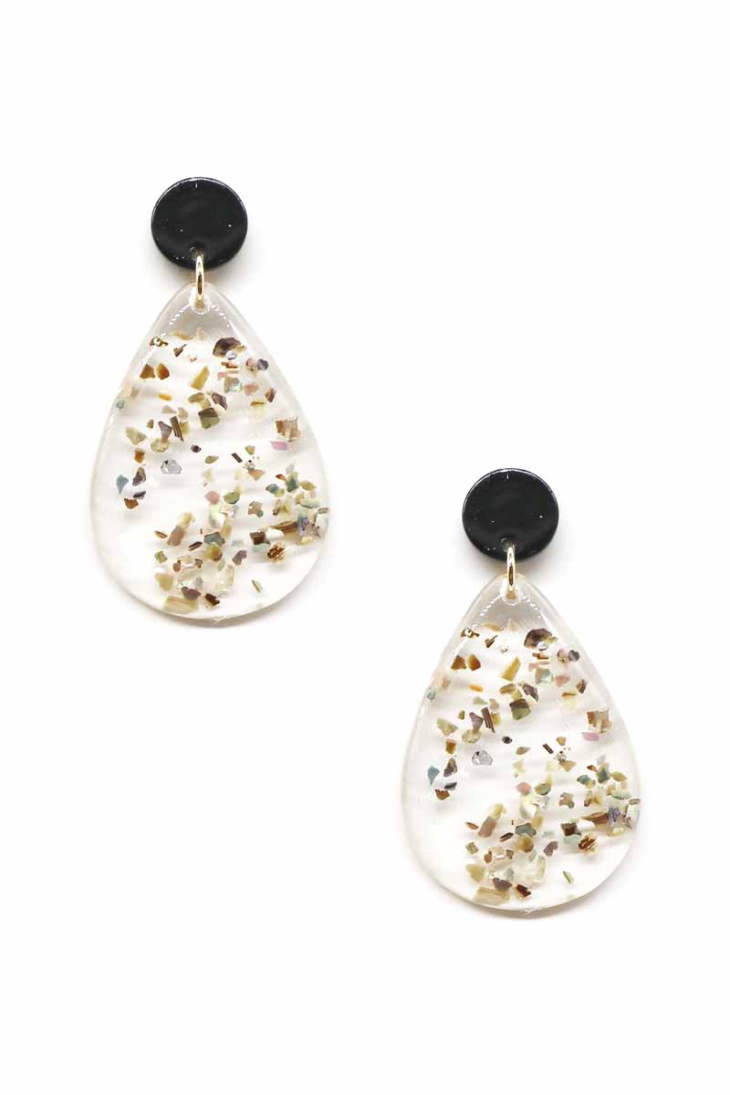 FLAKE RESIN TEARDROP DANGLE EARRING