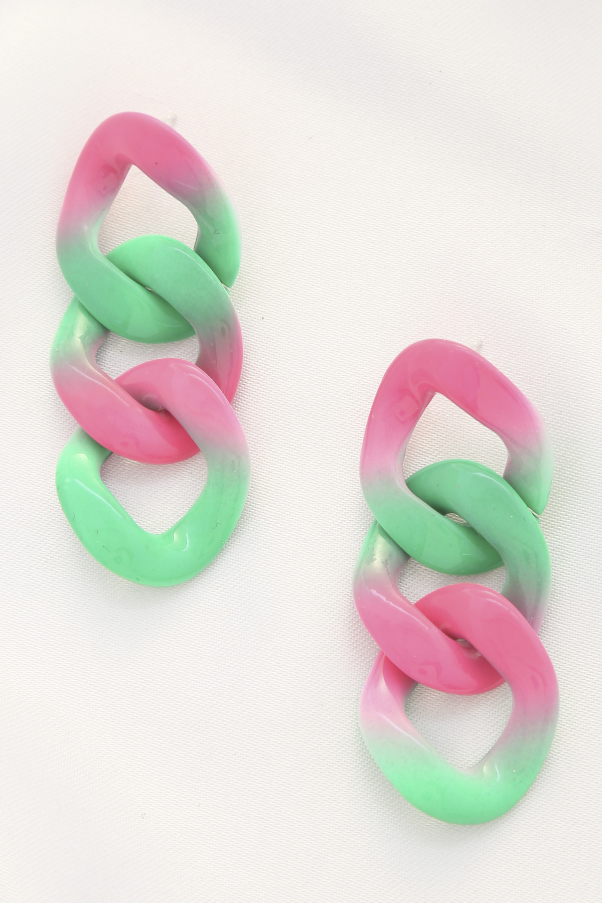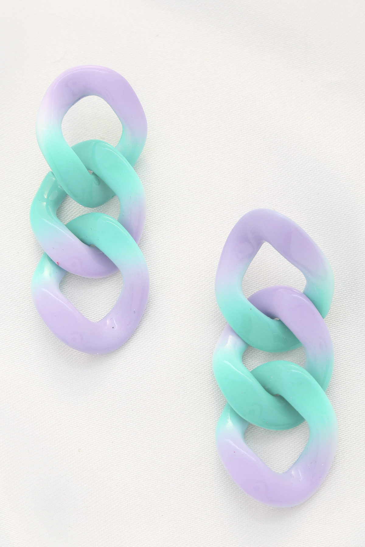 TRANSAPARNT IRIDESCENT CURB LINK DANGLE EARRING