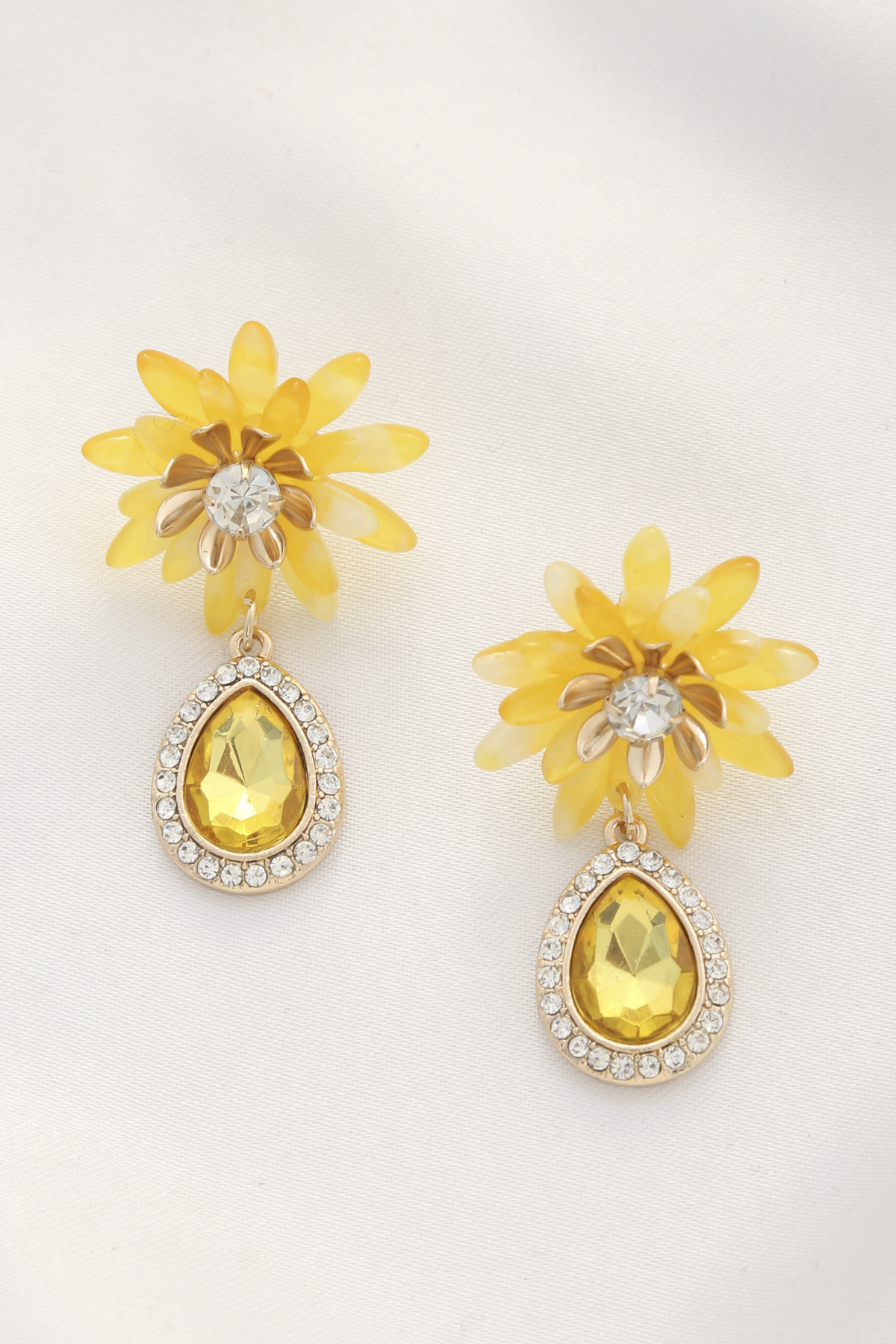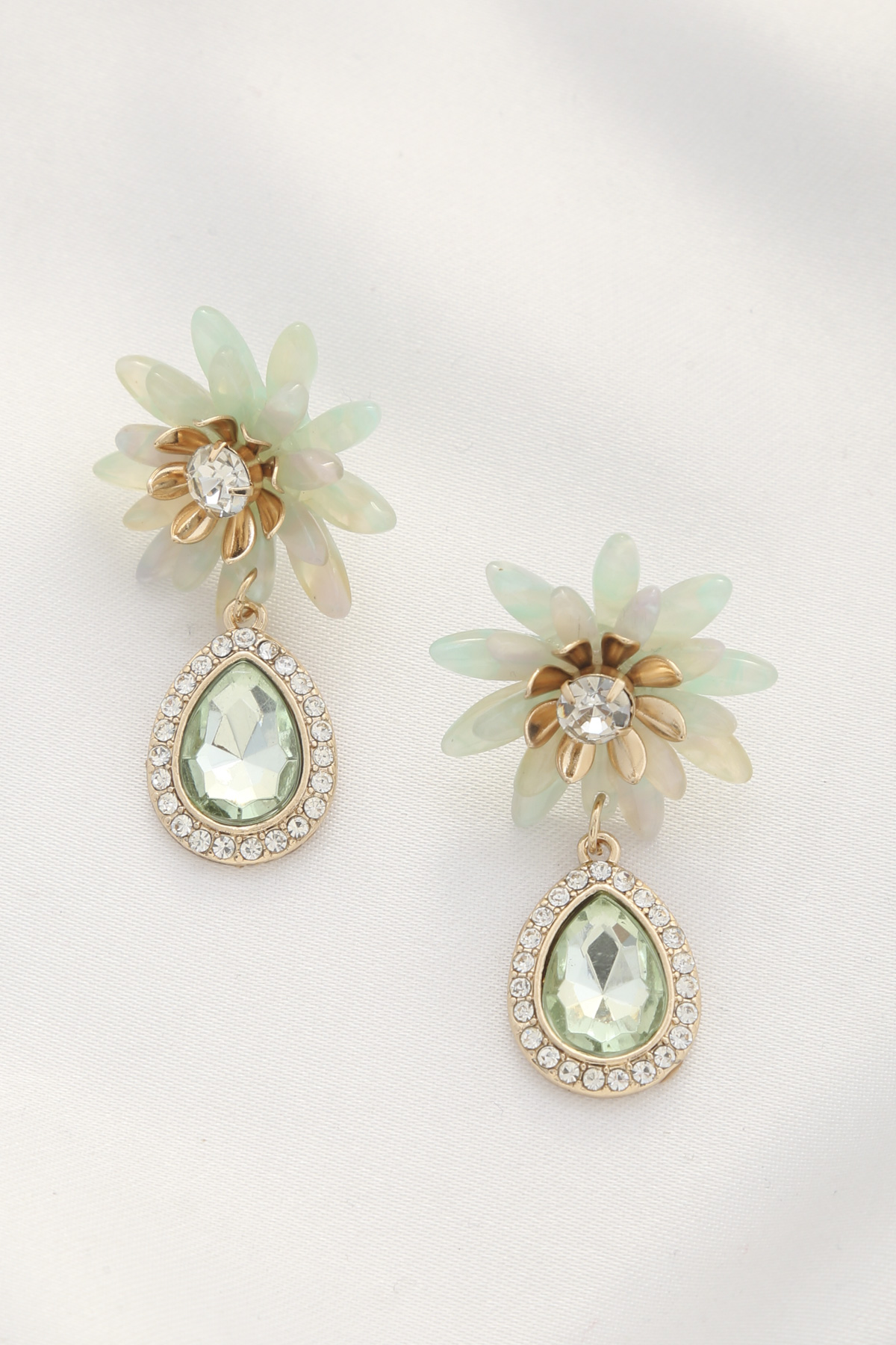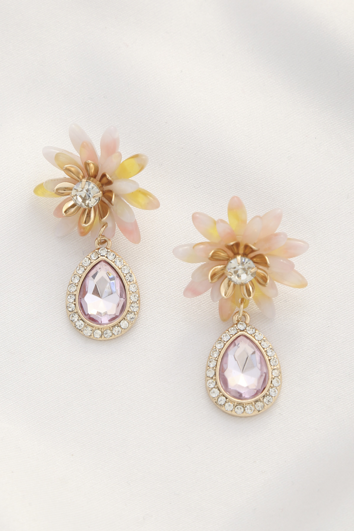 FLOWER CRYSTAL TEARDROP DANGLE EARRING