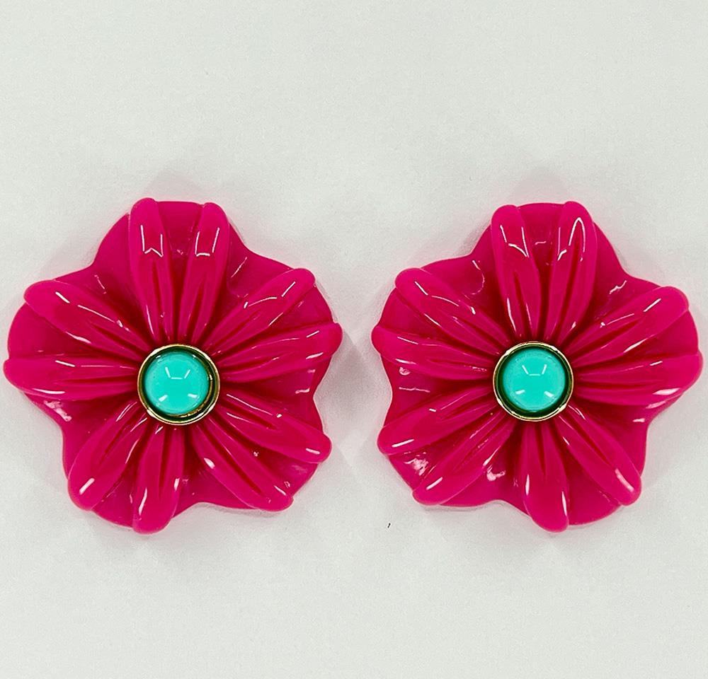 WESTERN FLOWER STONE LINK DANGLE EARRING