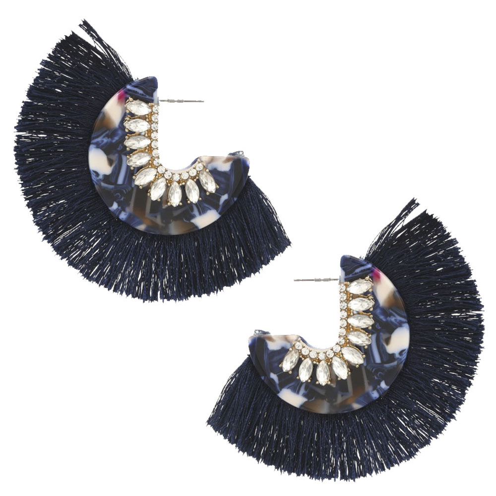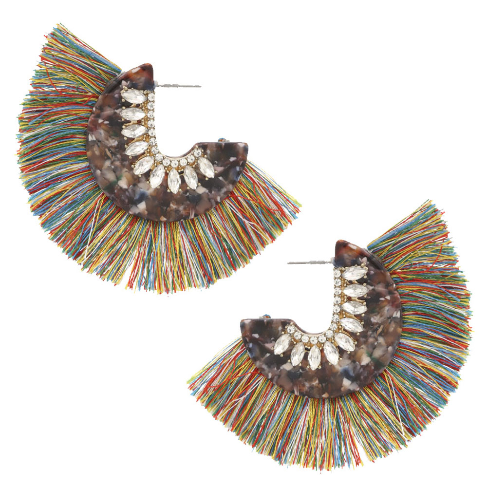 ACETATE RHINESTONE TASSE EDGE EARRING