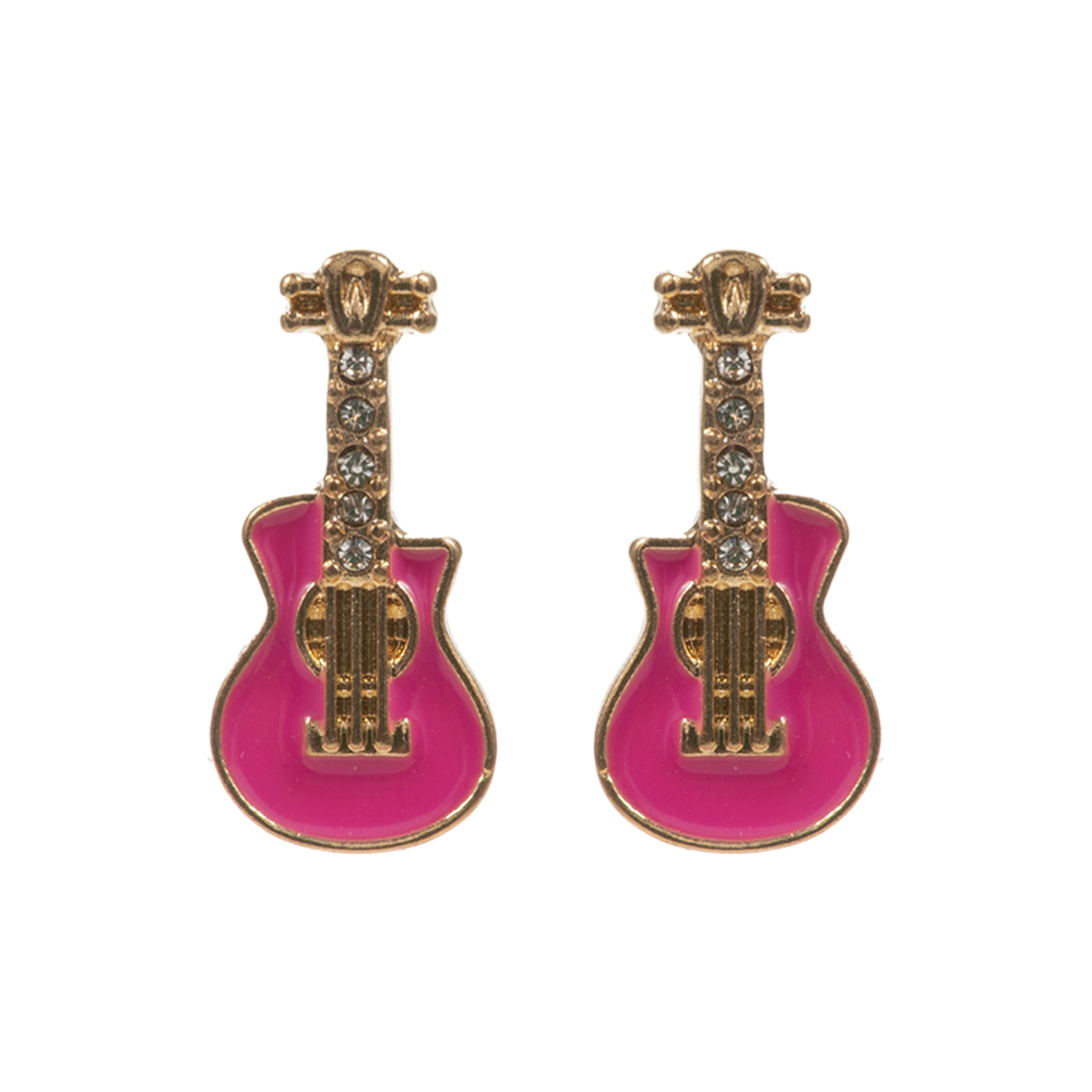 RHINESTONE ENAMEL GUITAR EARRING