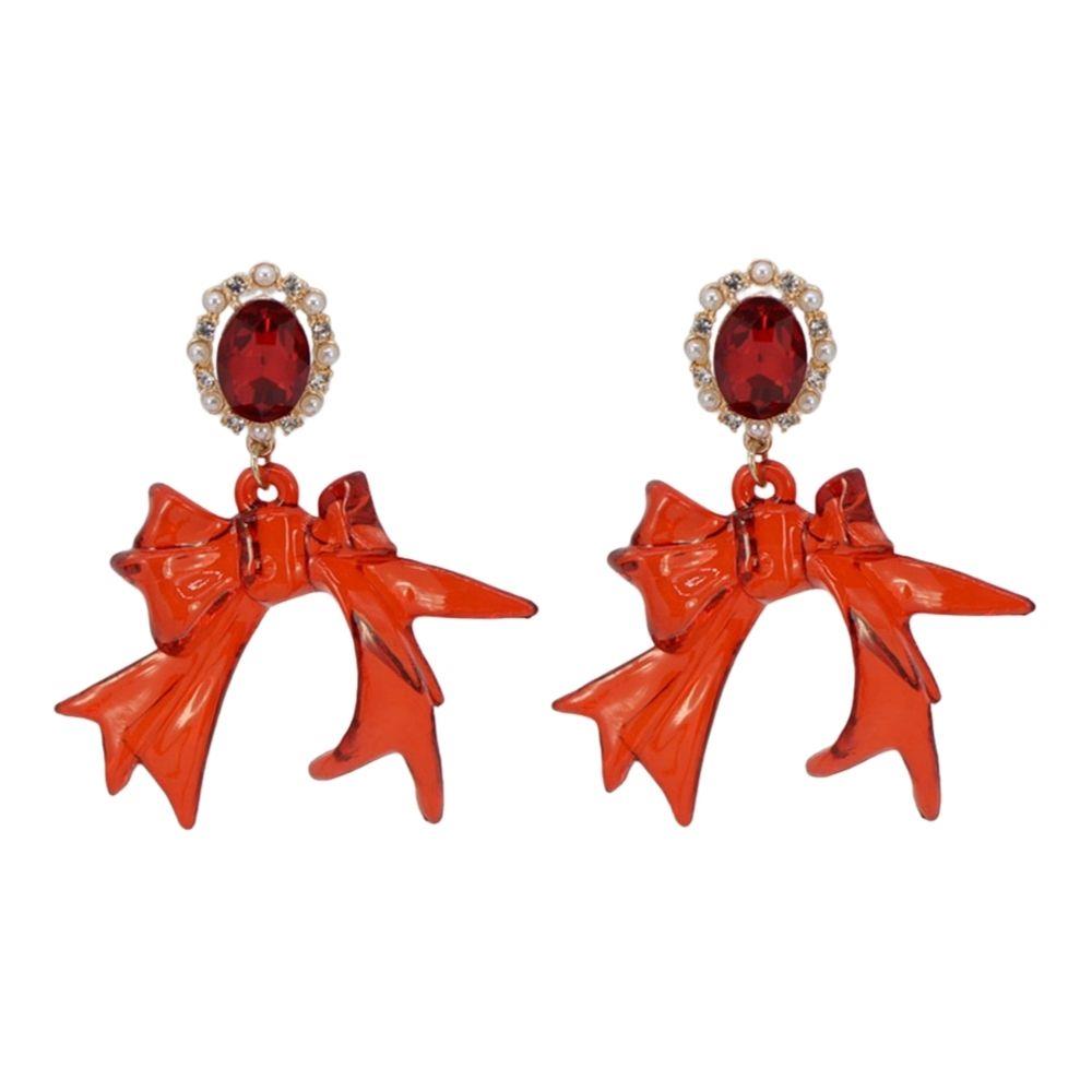 SODAJO DAINTY RIBBON BOW CUBE CZ GOLD DIPPED EARRING