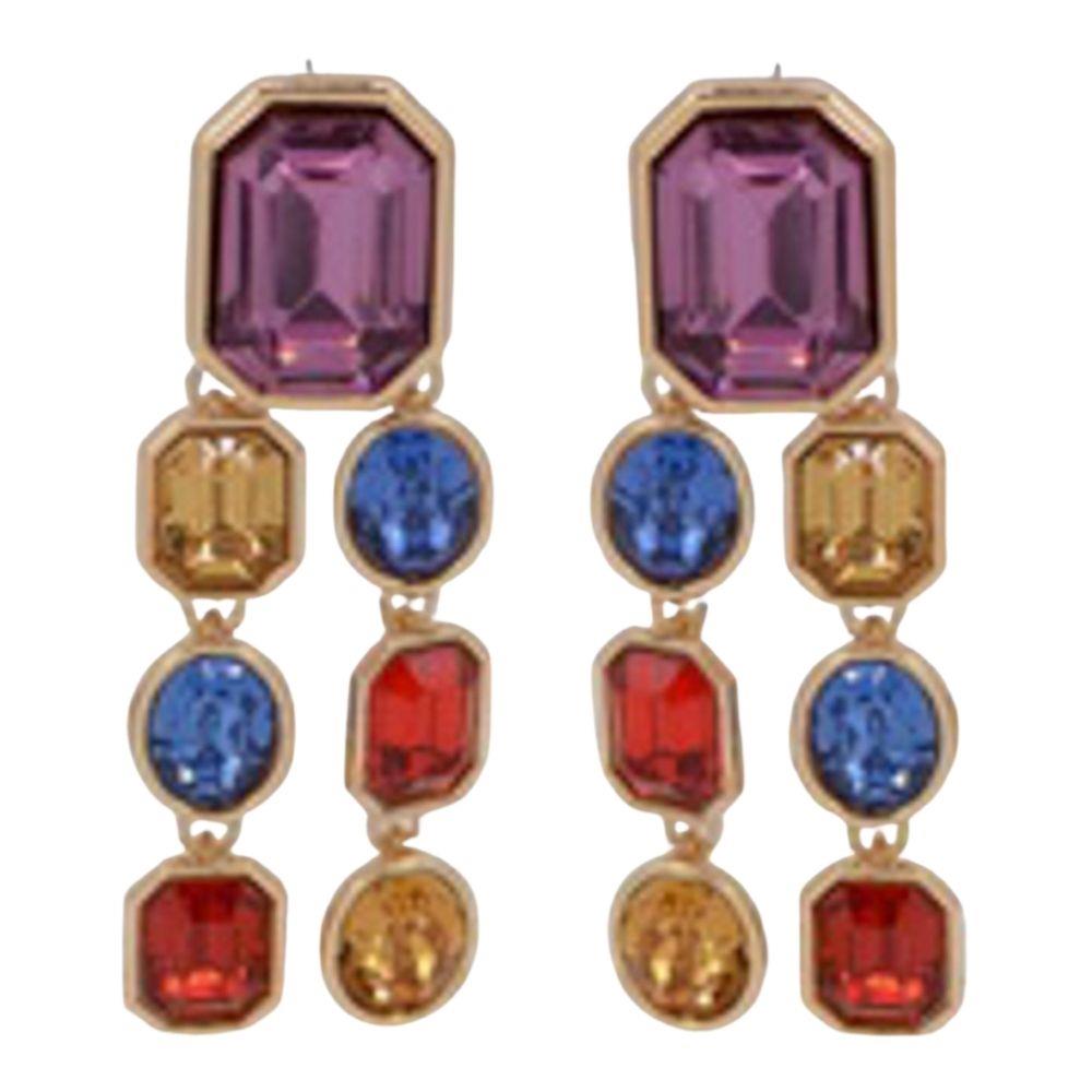 SODAJO LONG TEARDROP CRYSTAL DANGLE GOLD DIPPED EARRING