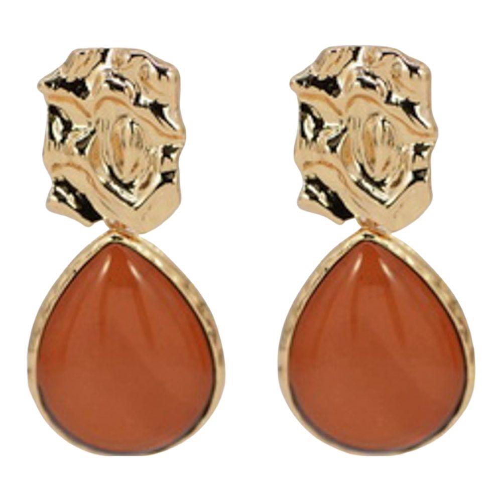 ACRYLIC AMBER TEARDROP STUD EARRINGS