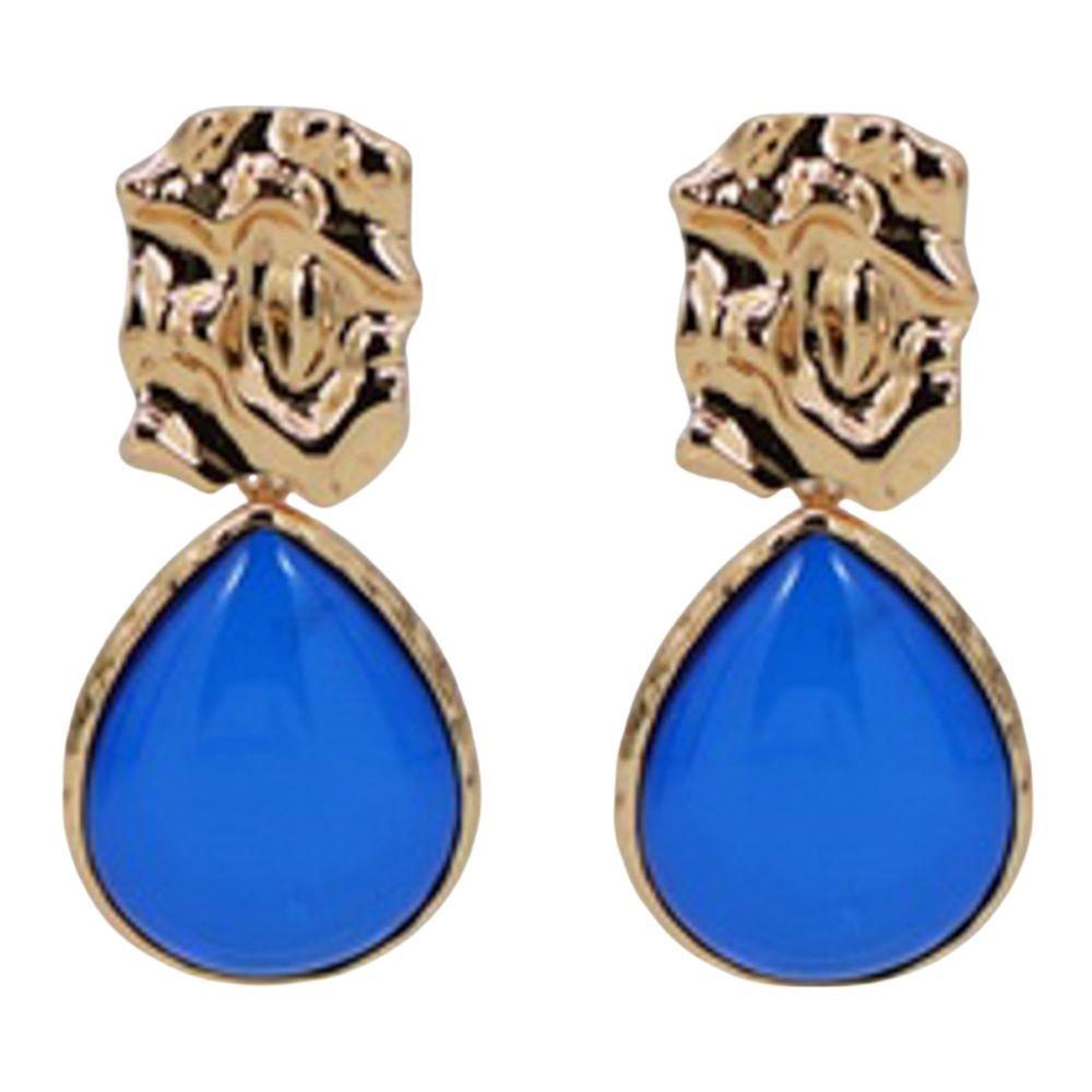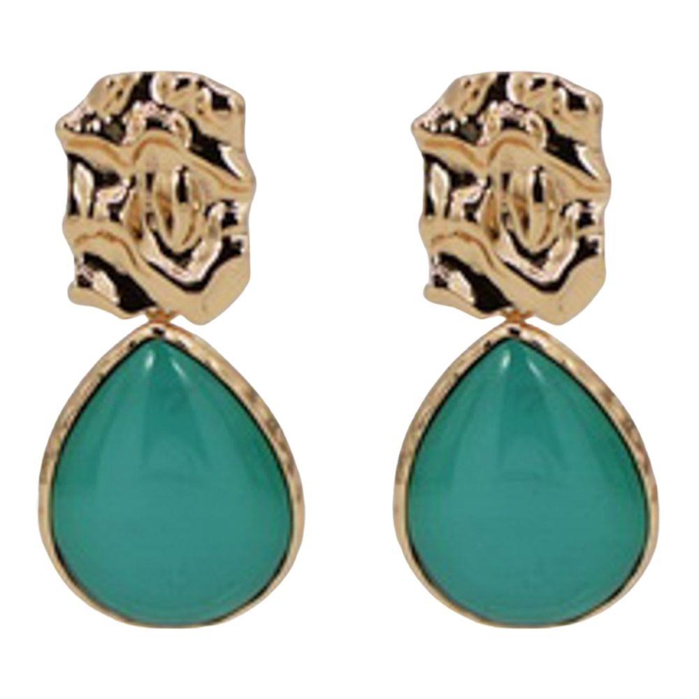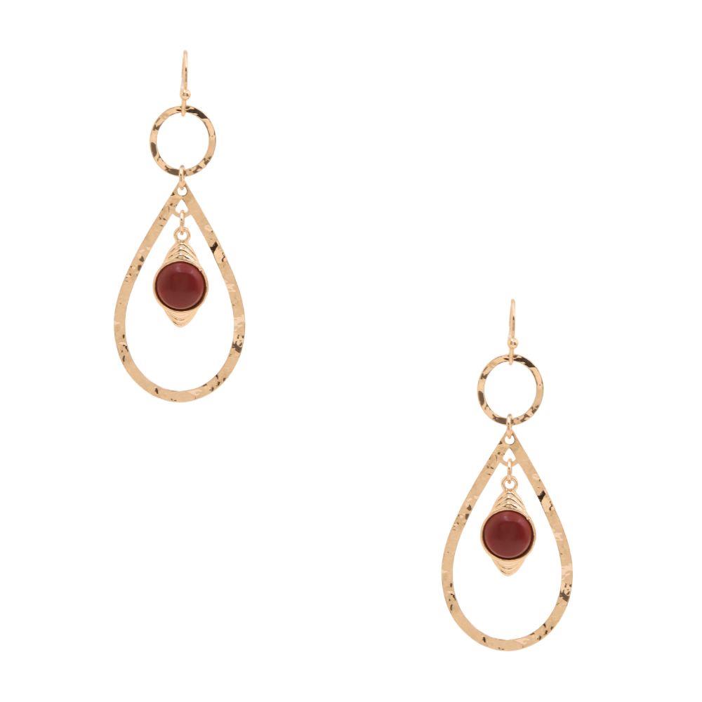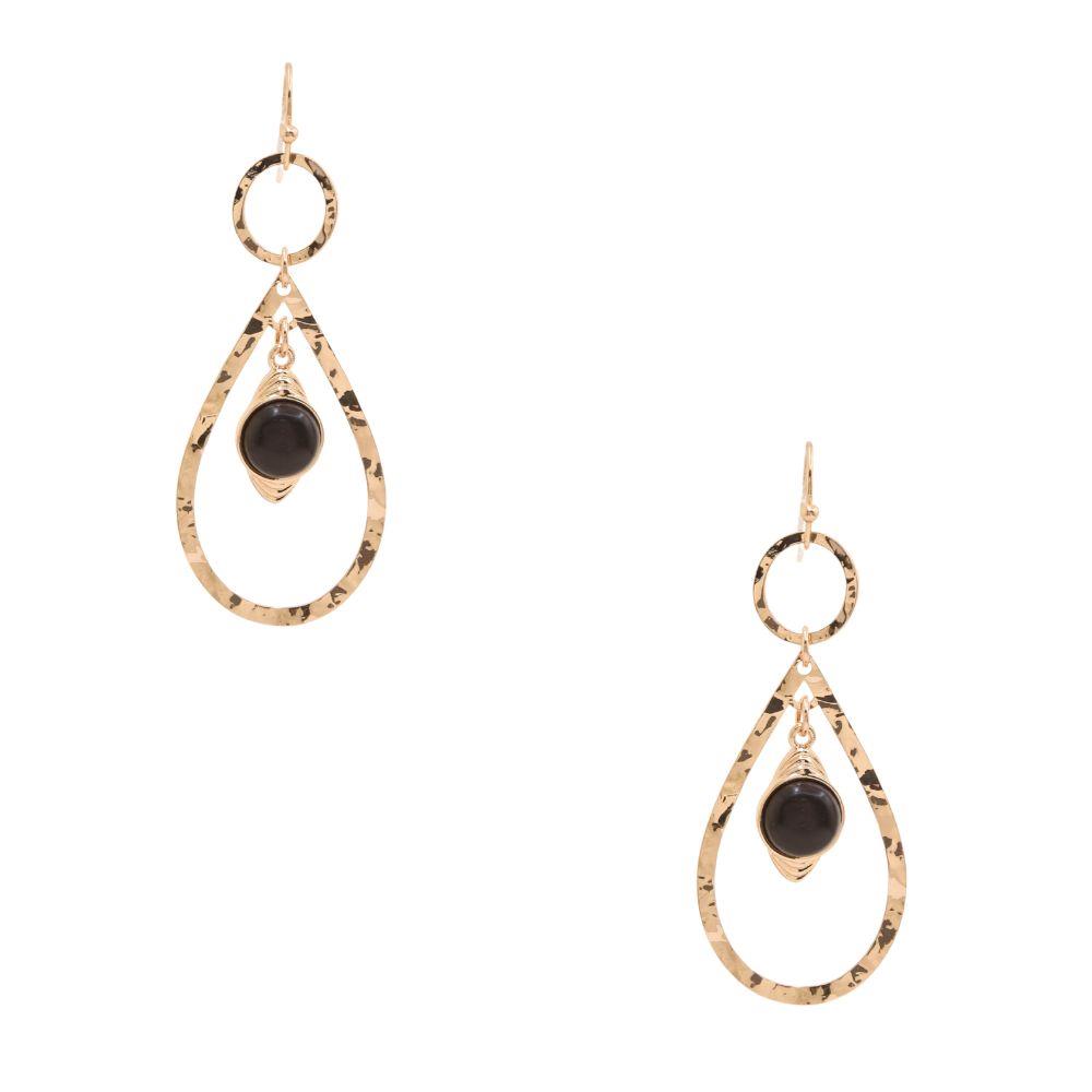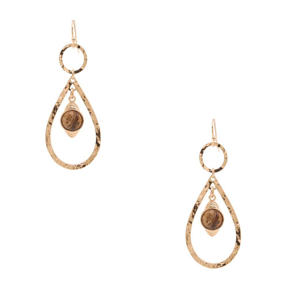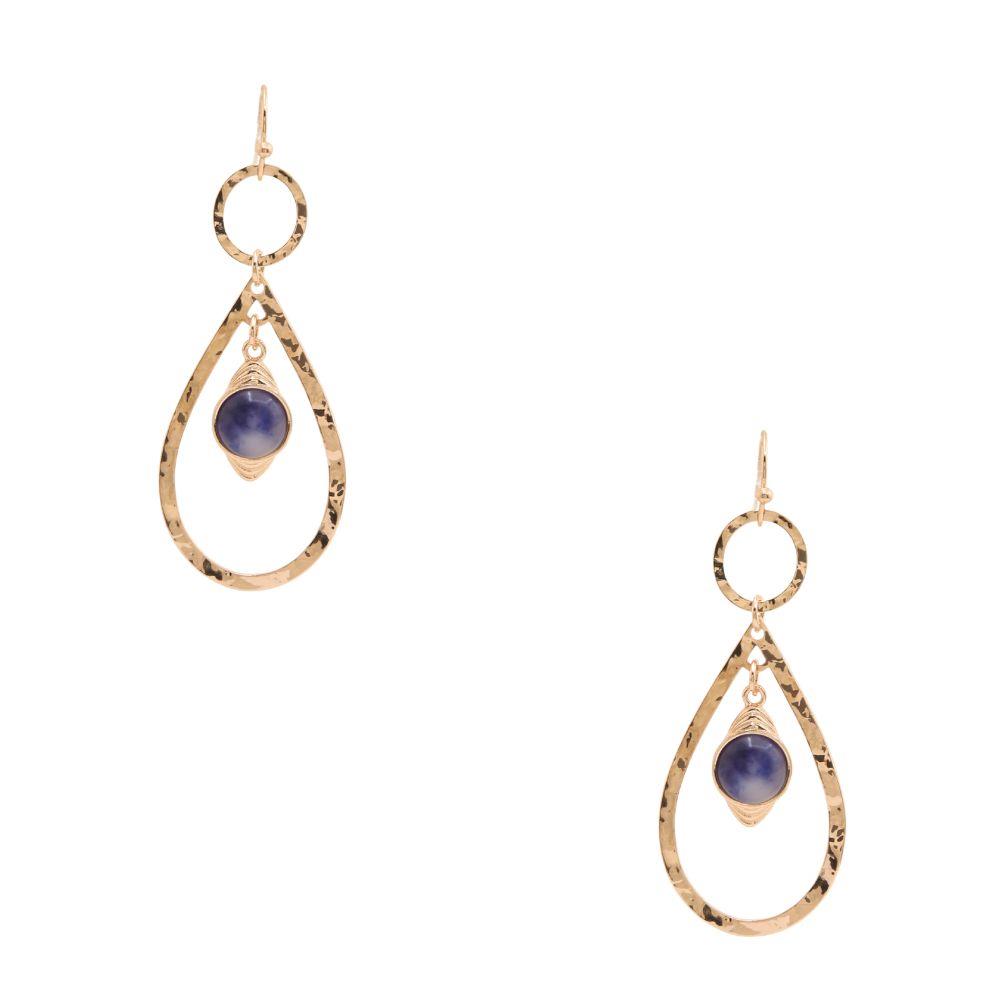 METAL TEXTURED TEARDROP CABOCHON DANGLE EARRING