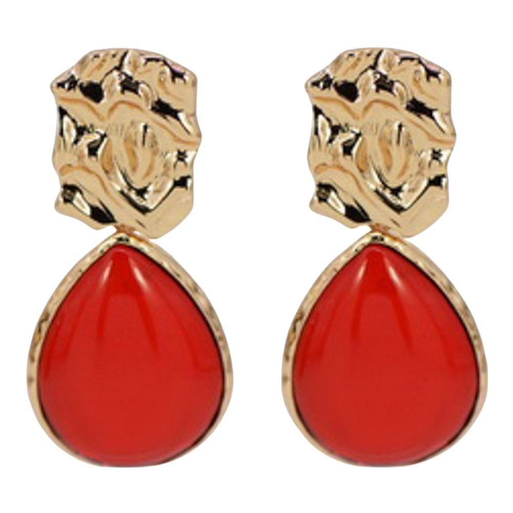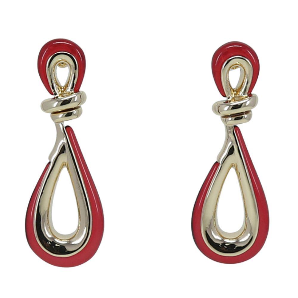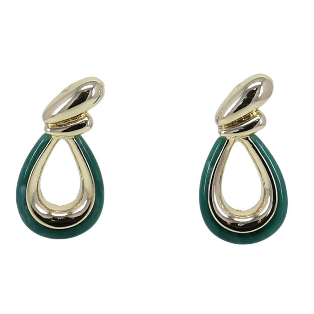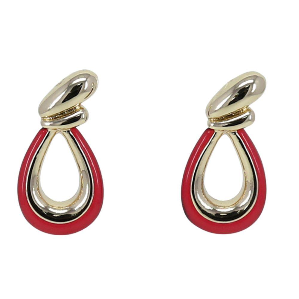 METAL ENAMEL COLOR TEARDROP STUD EARRING