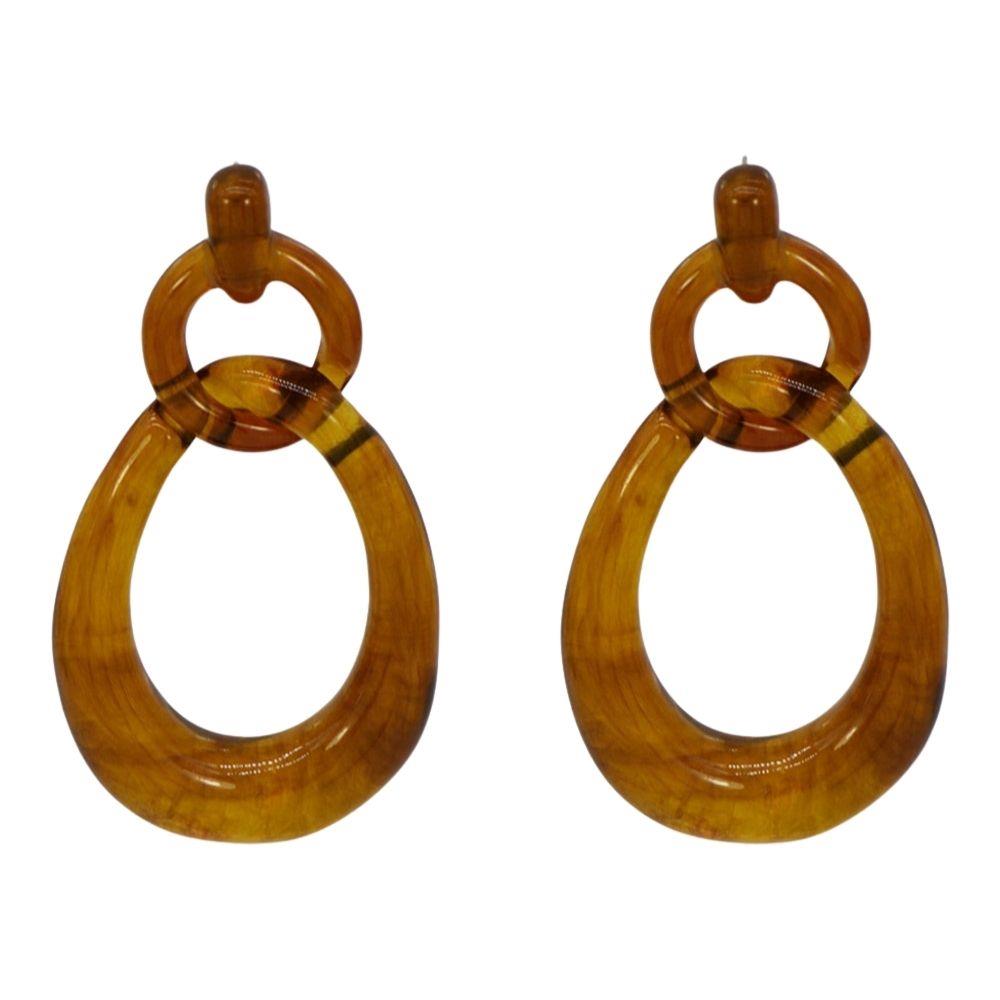 AMBER ACRYLIC LINKED OVAL DROP EARRING