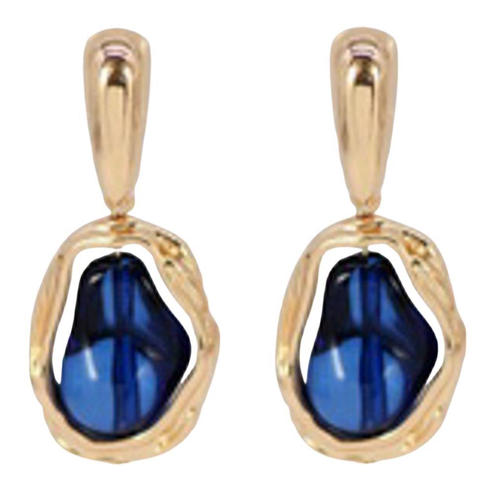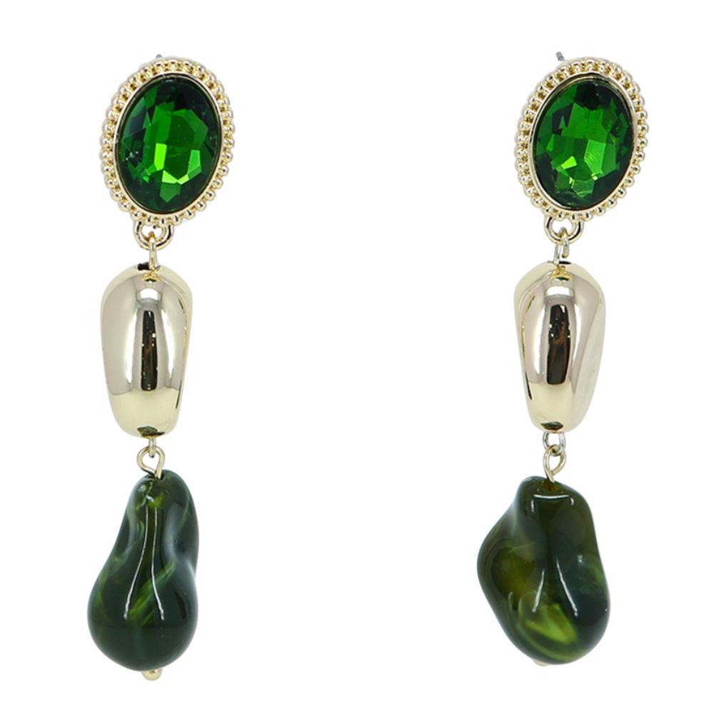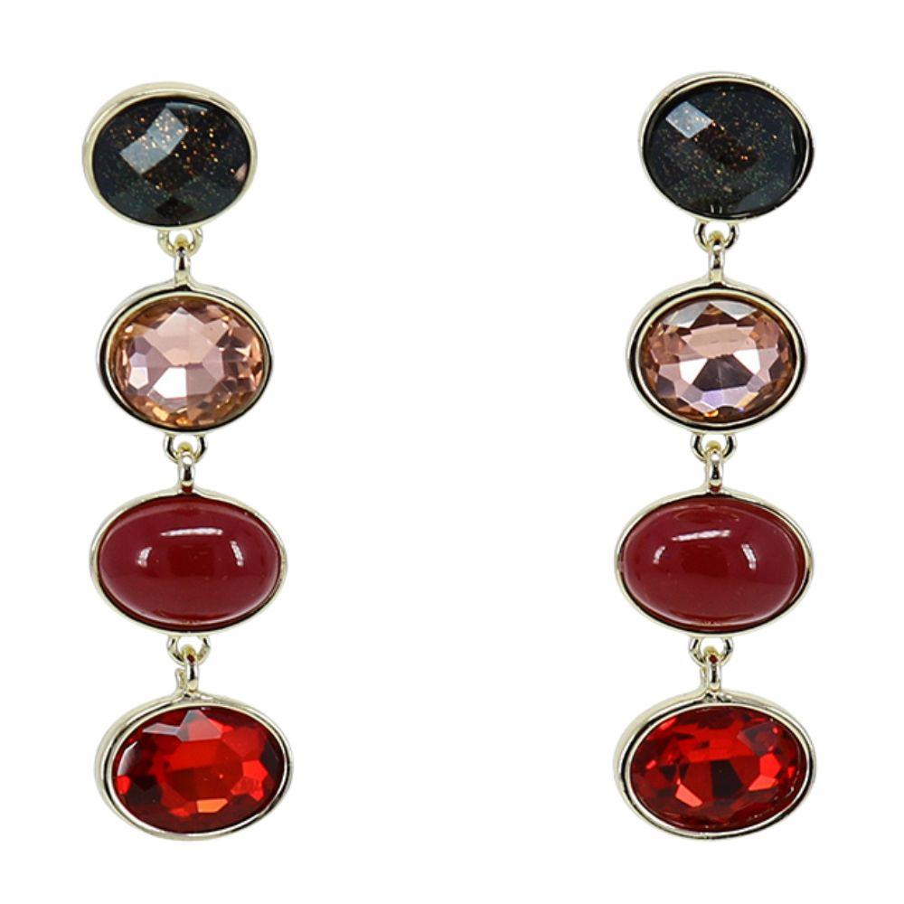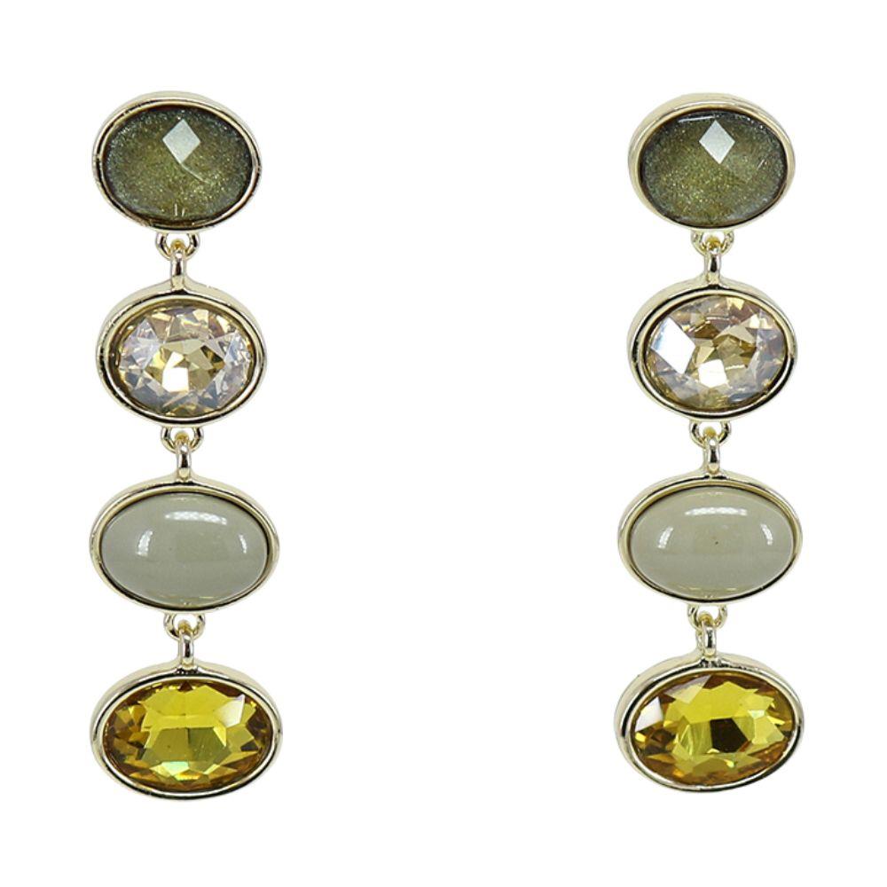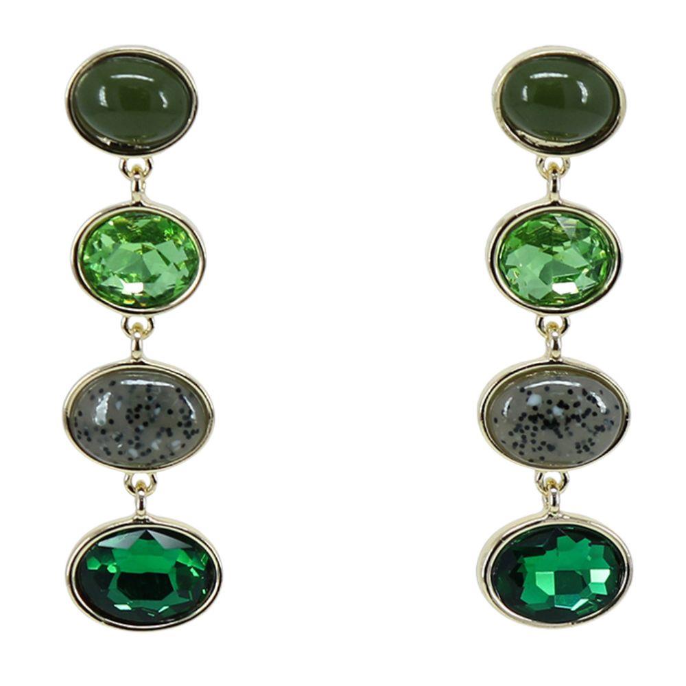 CRYSTAL STONE OVAL LINK DANGLE EARRING