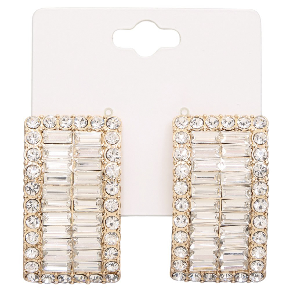 COLOR BEAD RECTANGLE CRYSTAL LINK POST EARRING