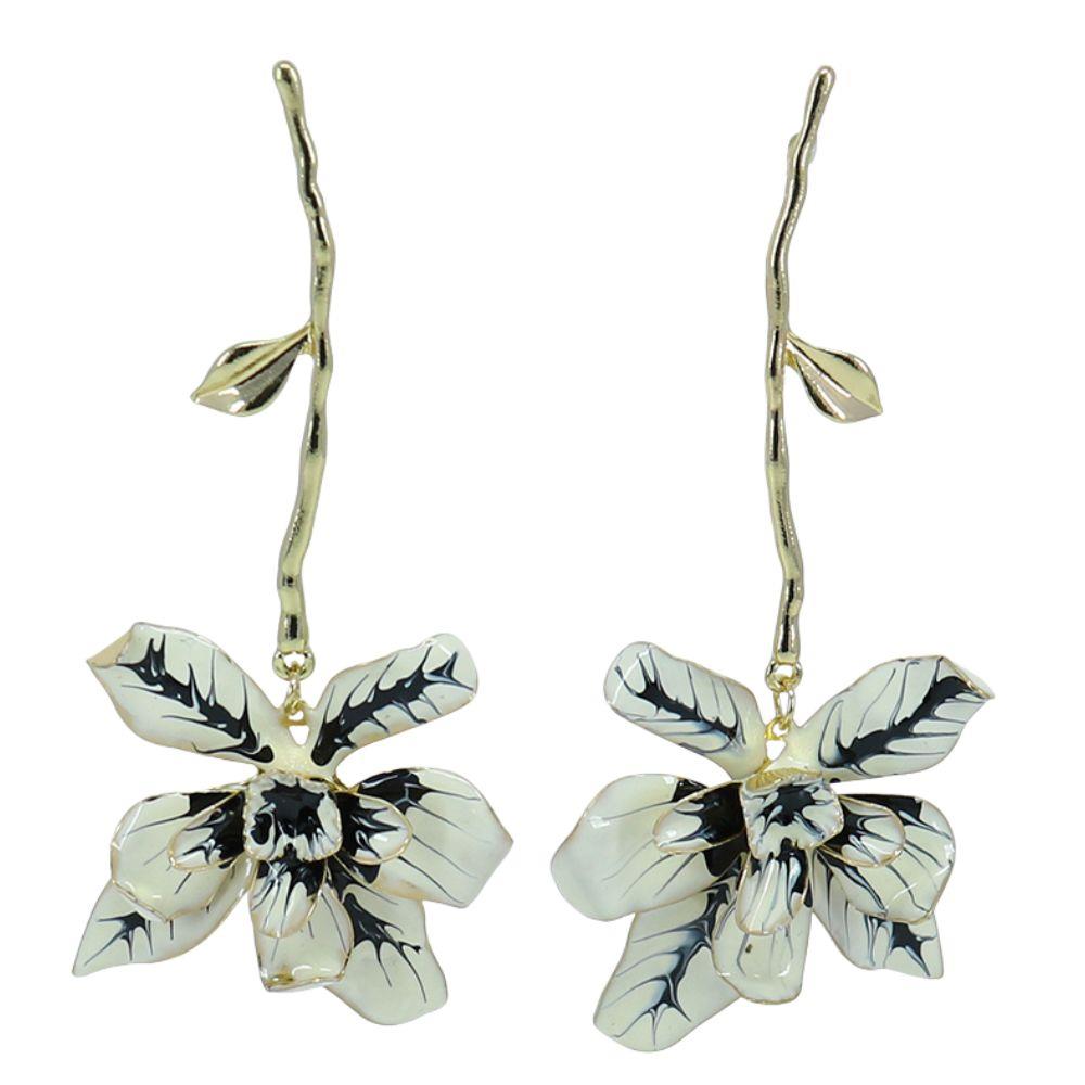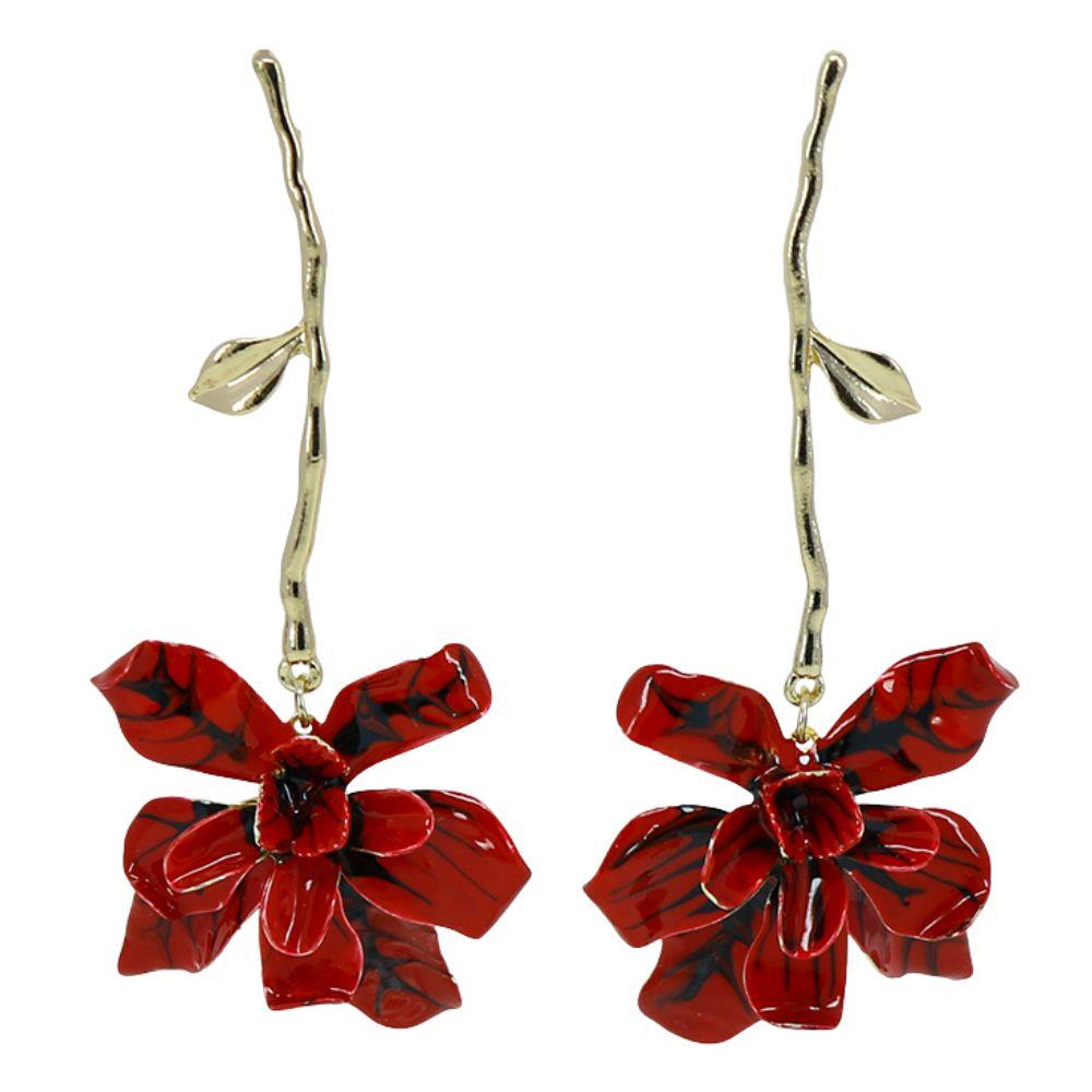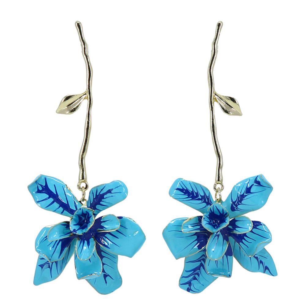COLOR FLOWER METAL BAR DANGLE EARRING