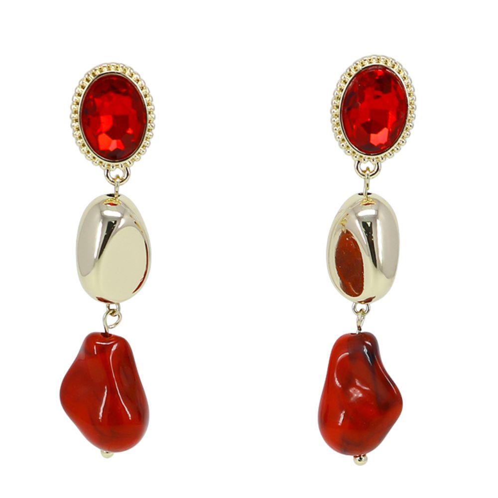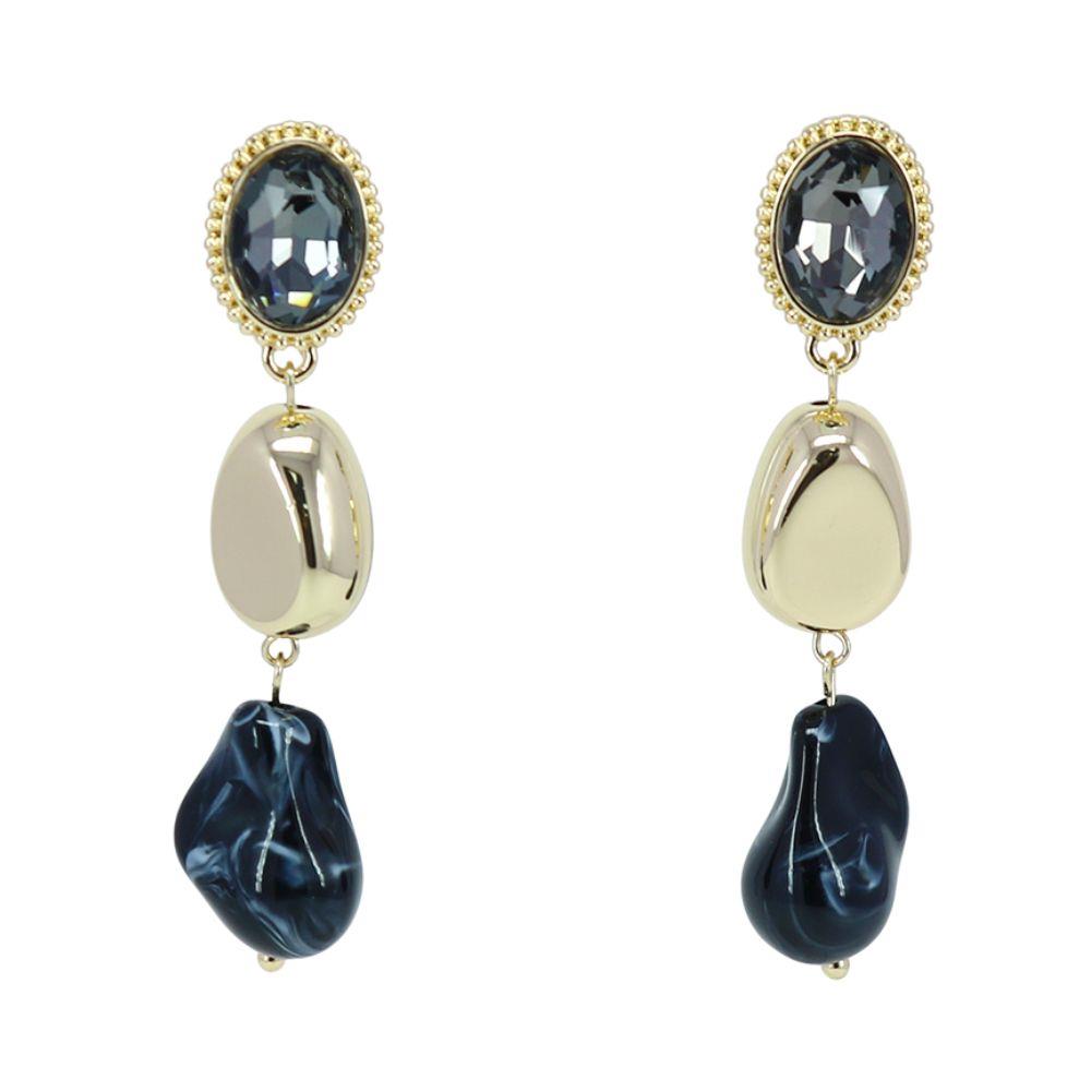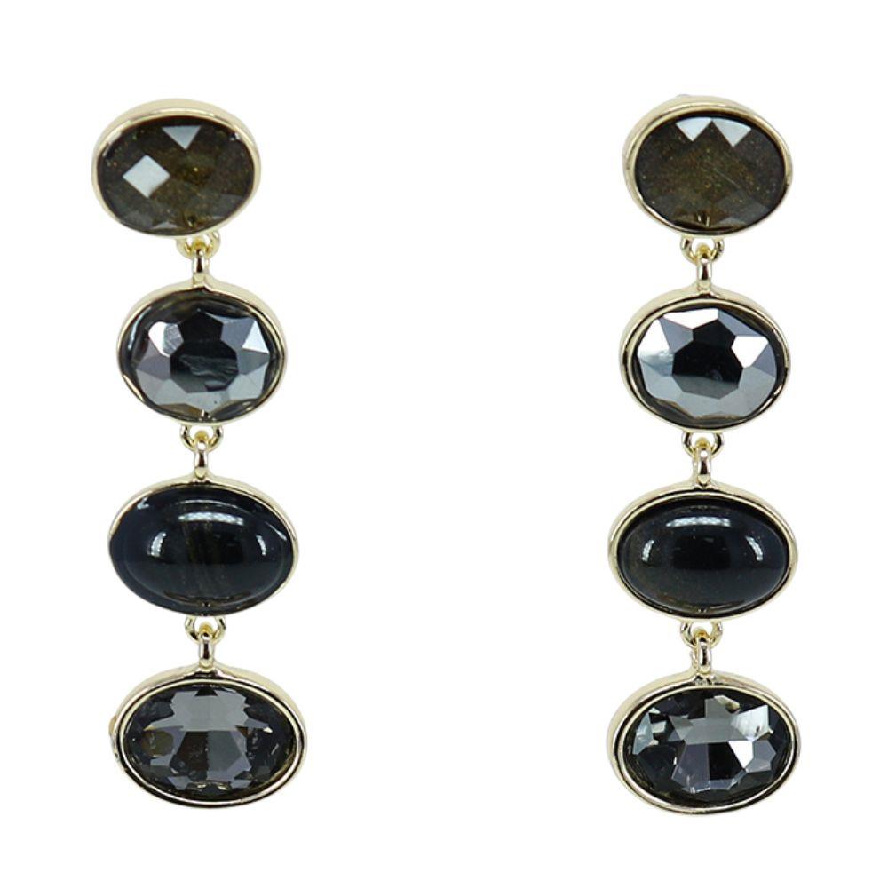 OVAL CRYSTAL METAL BEAD LINK DANGLE EARRING