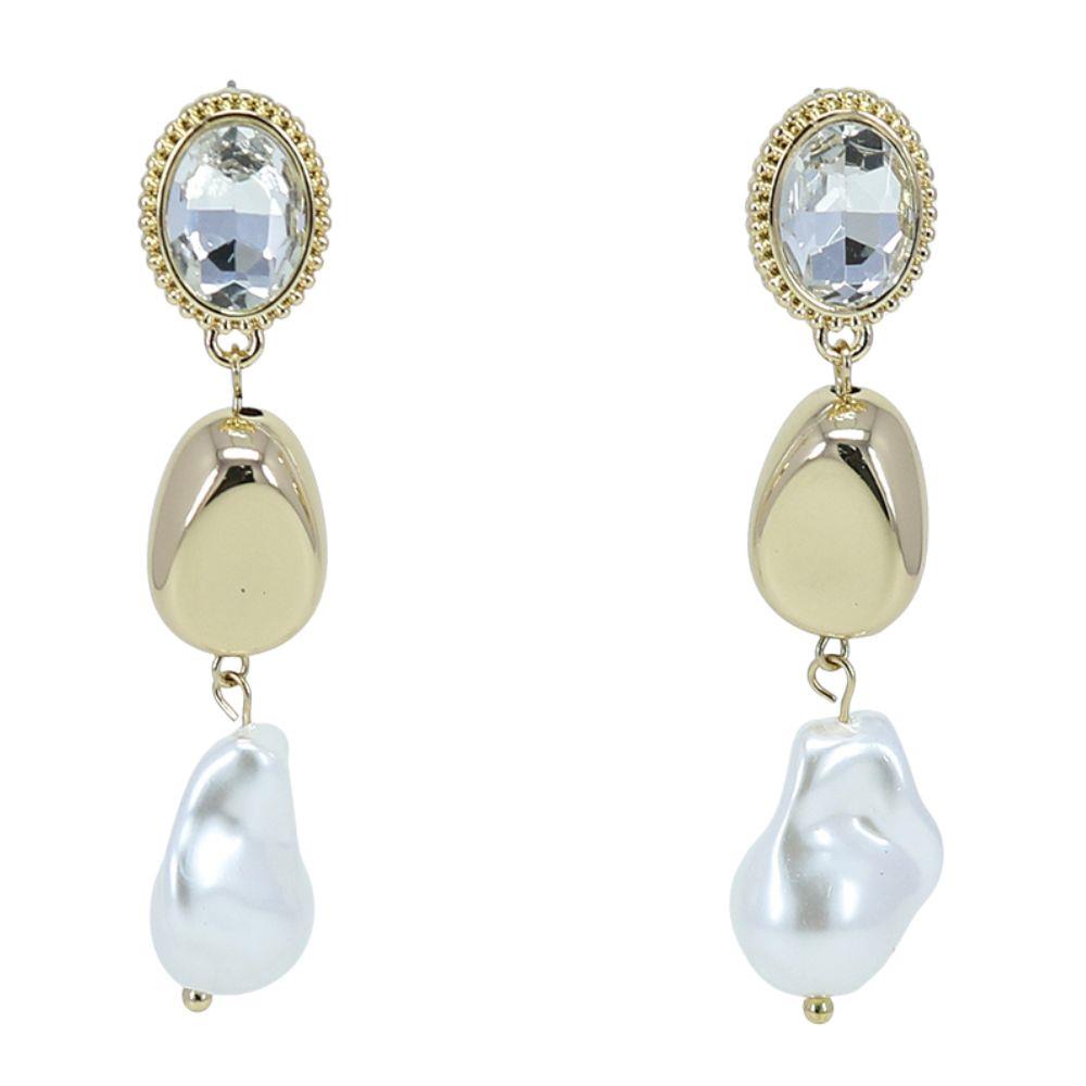 SODAJO PEARL BEAD CZ RING GOLD DIPPED EARRING
