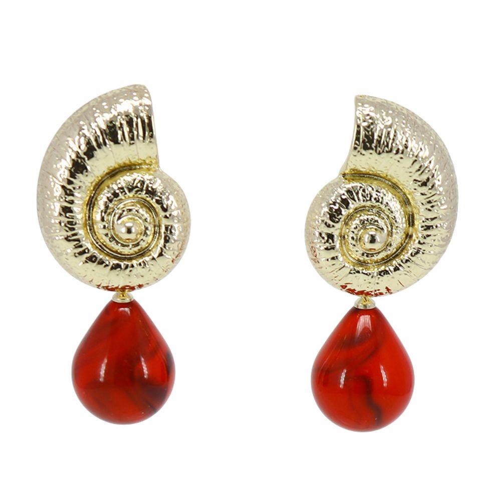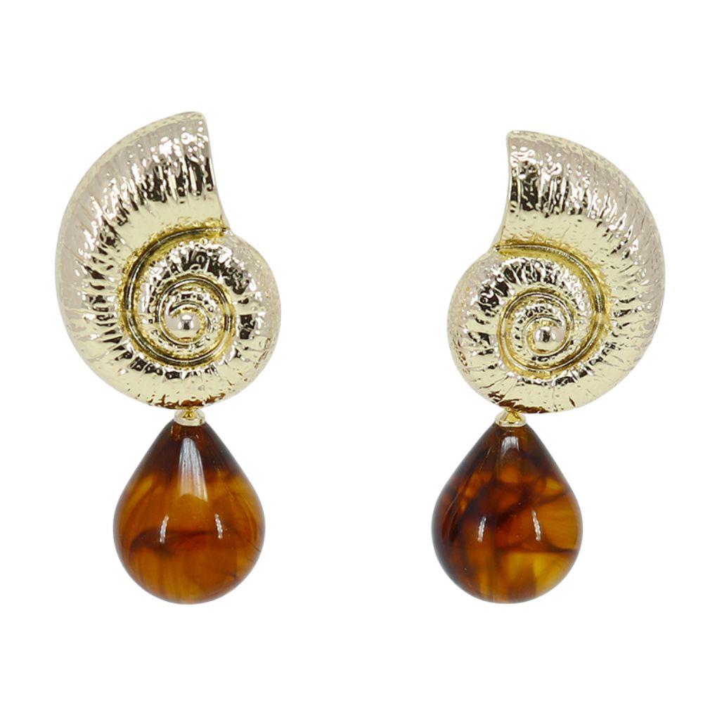 SEASHELL ACETATE BEAD LINK DANGLE EARRING