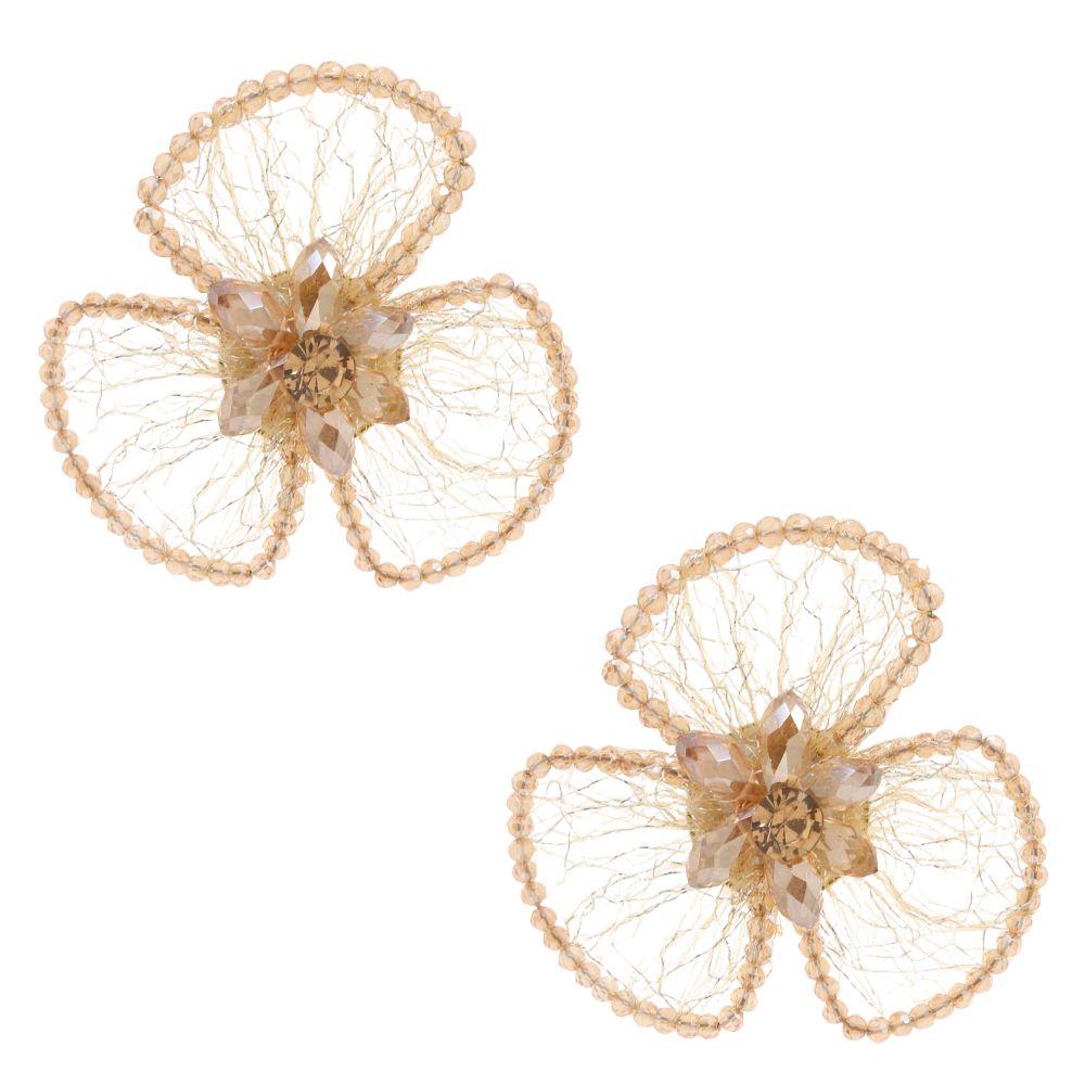 SODAJO CZ FLOWER PEARL BEAD GOLD DIPPED EARRING