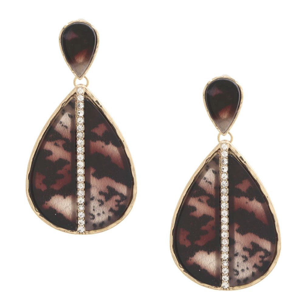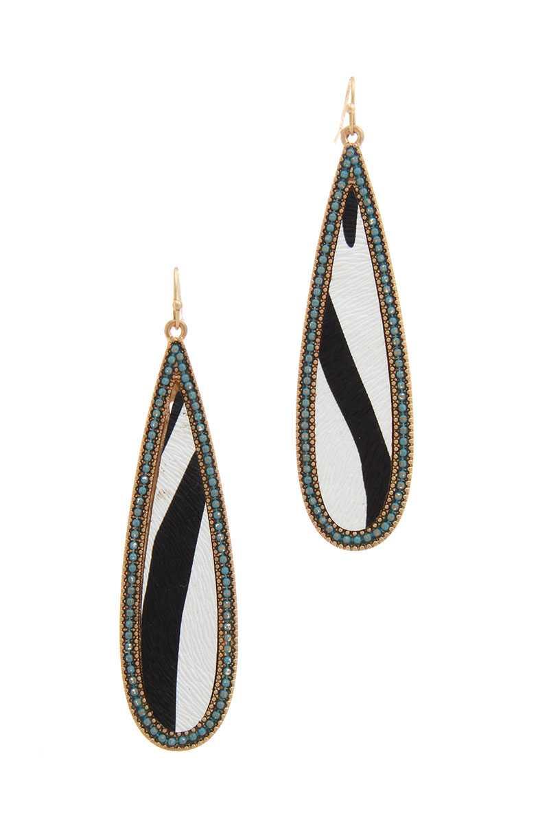 ANIMAL PRINT PATTERN RHINESTONE EDGE POST DROP EARRING